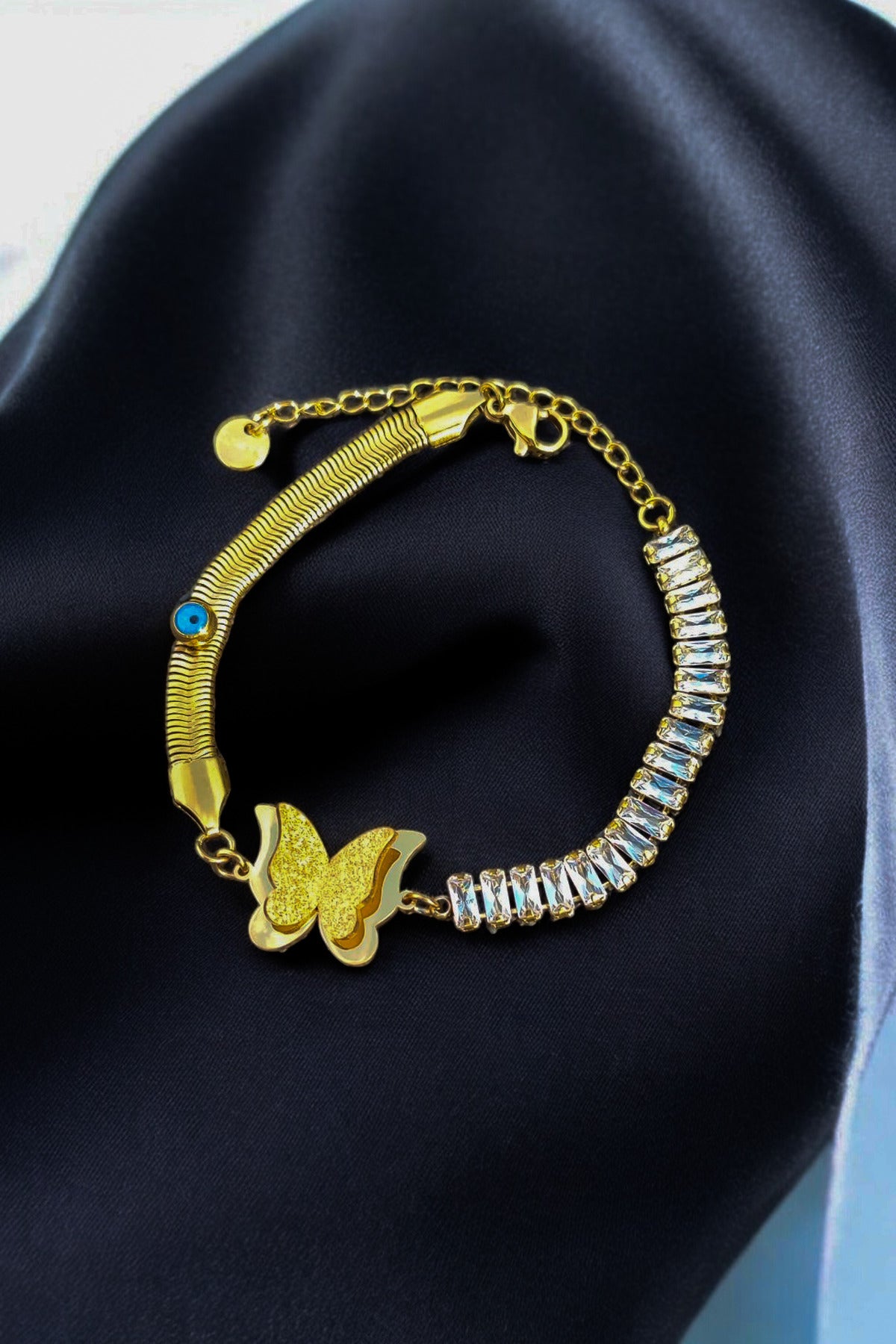 Kelebekli Kadın Bileklik Çelik (ALTIN RENKLİ) (AYARLANABİLİR)