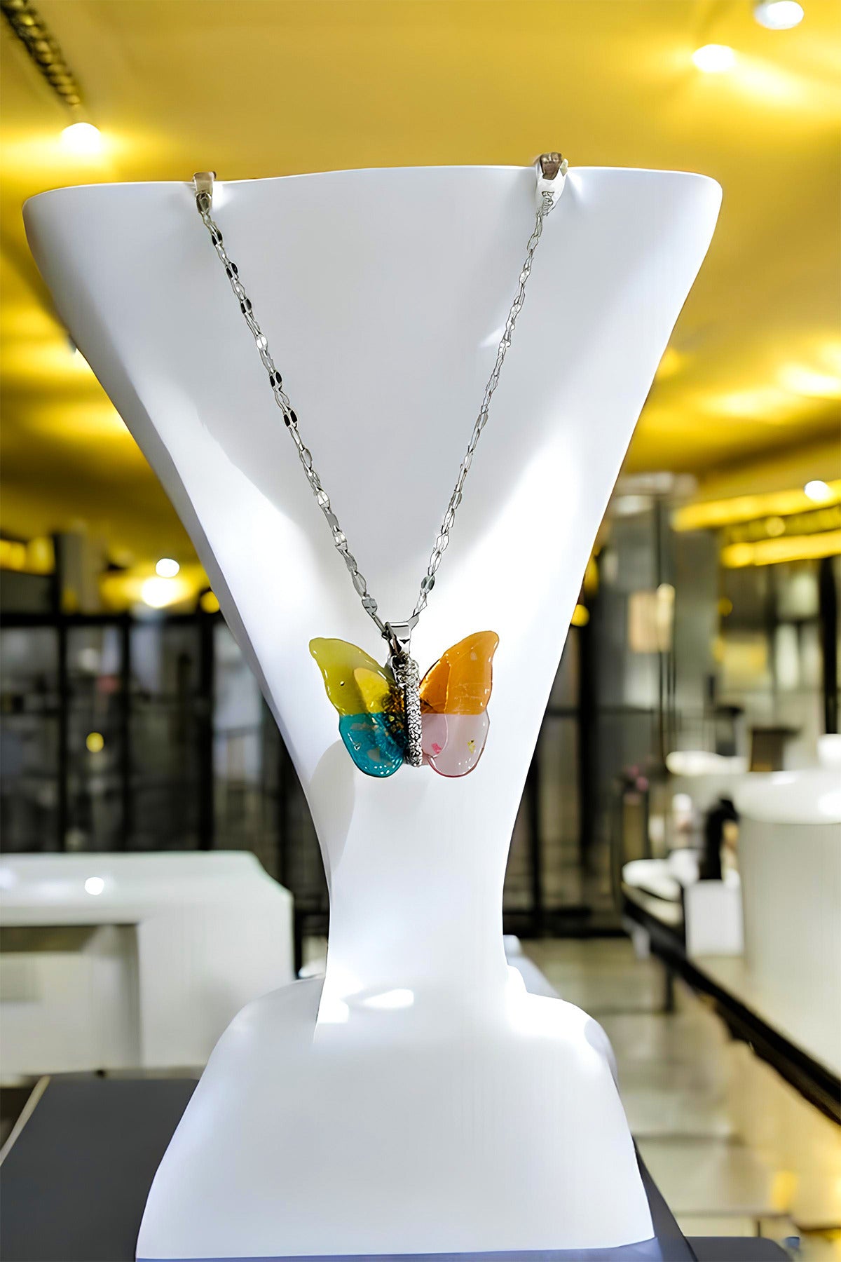 Renkli Kelebekli Kadın Kolye Ve Saç Tokası