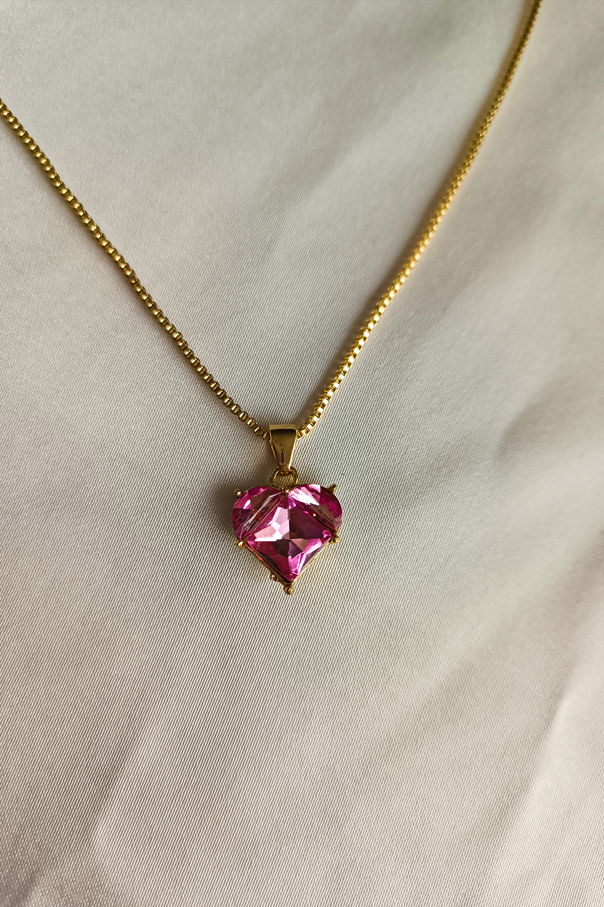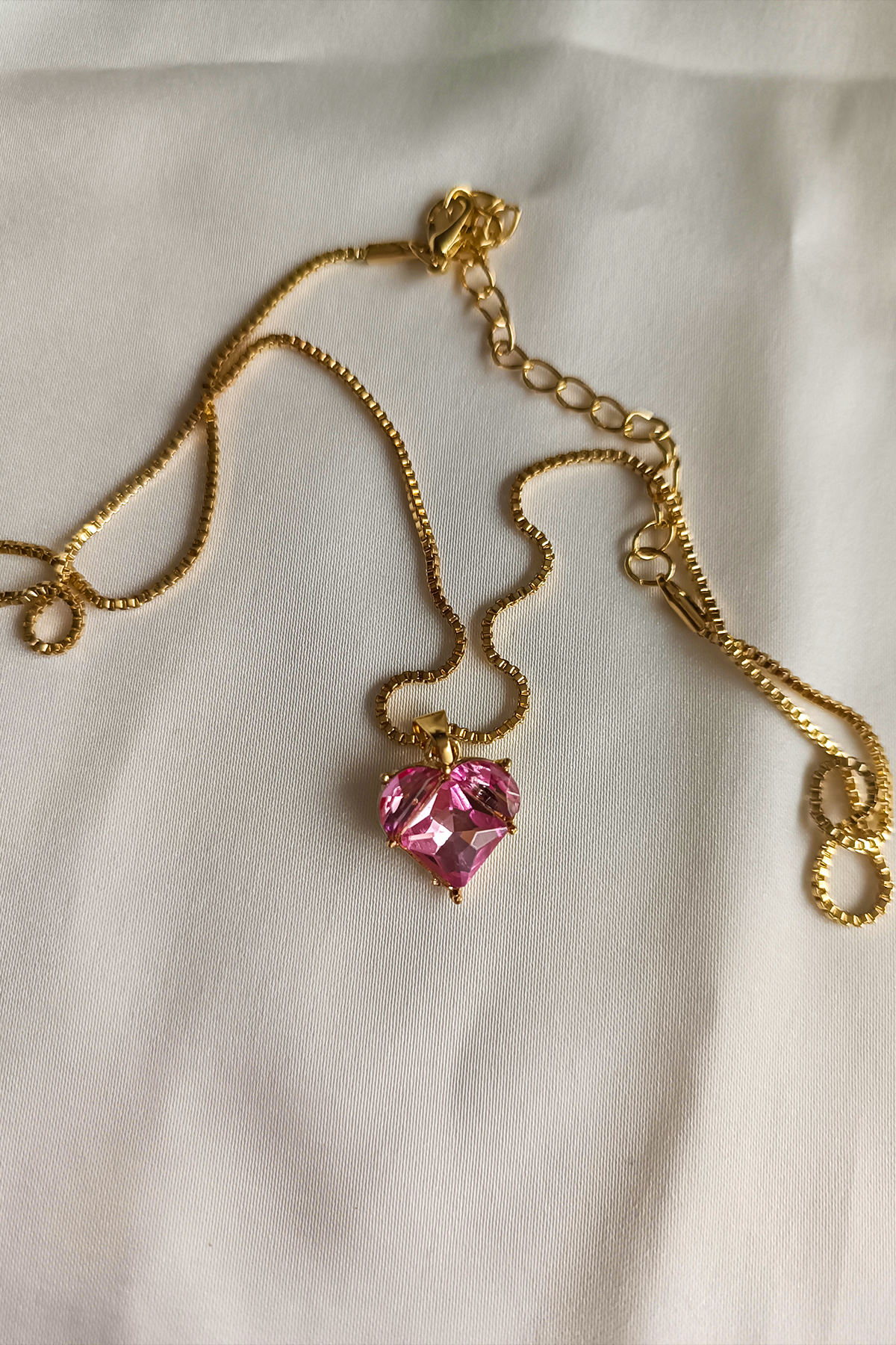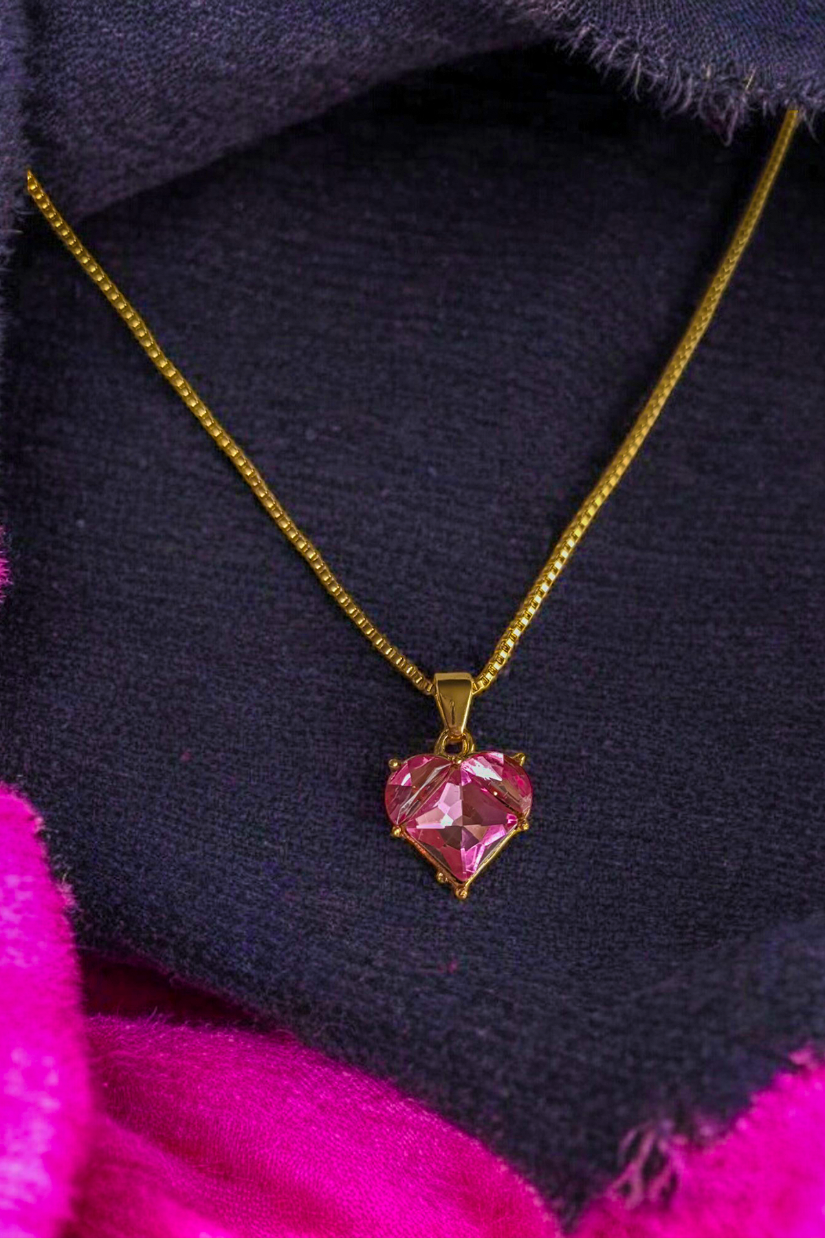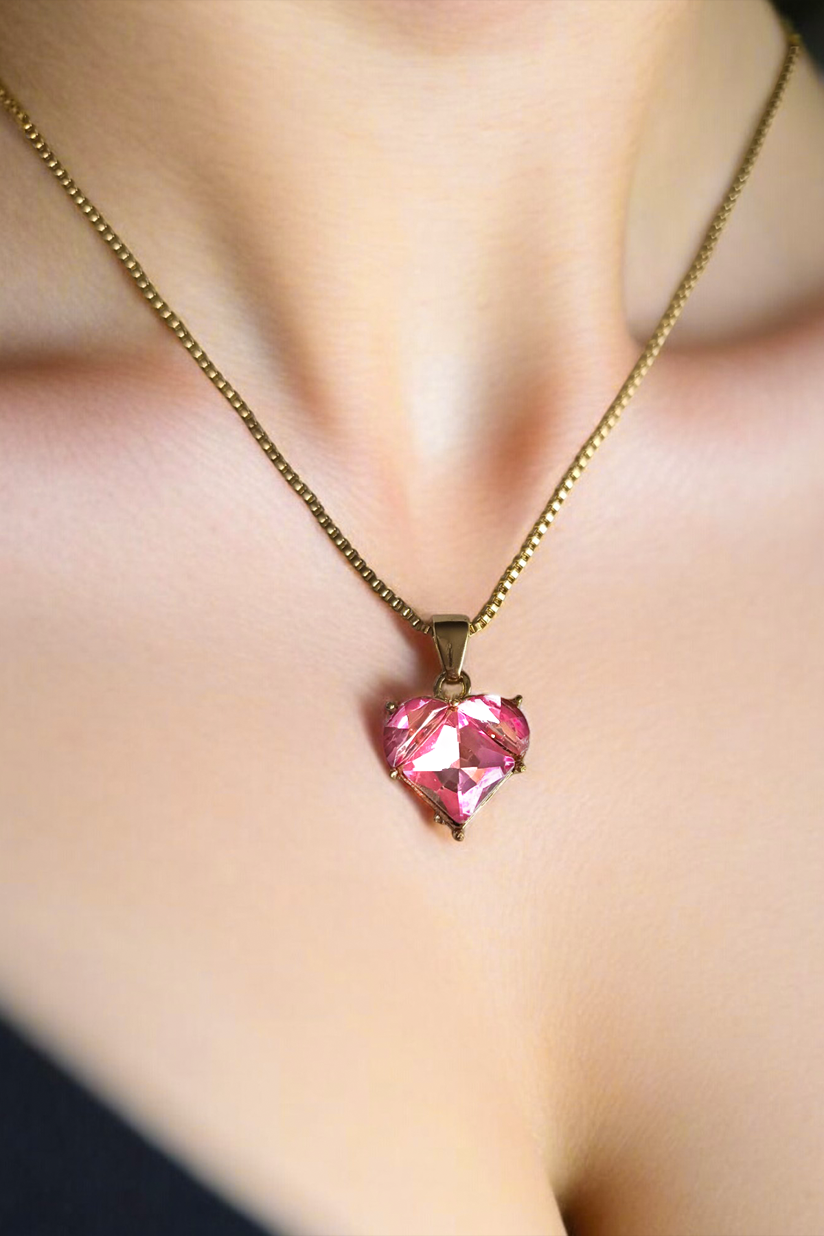 Pembe Kalpli Zarif Çelik Kolye
