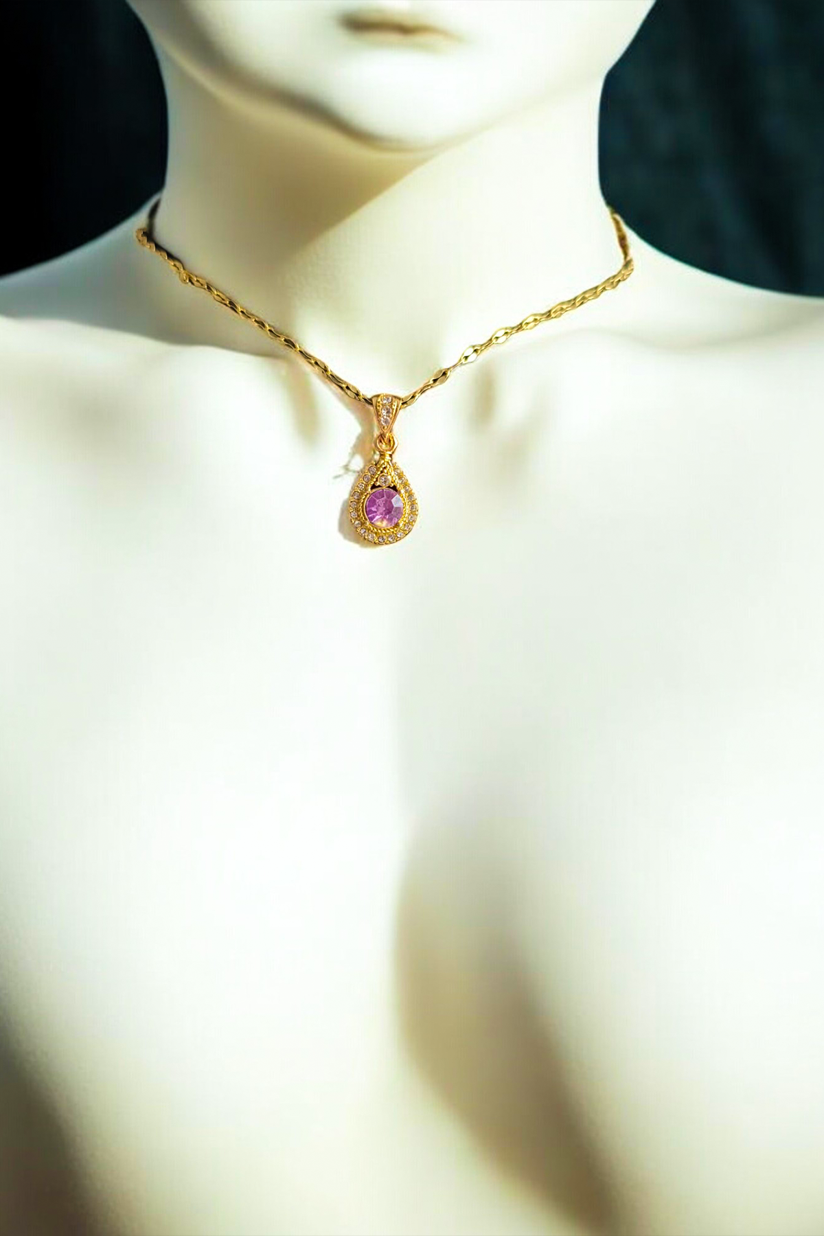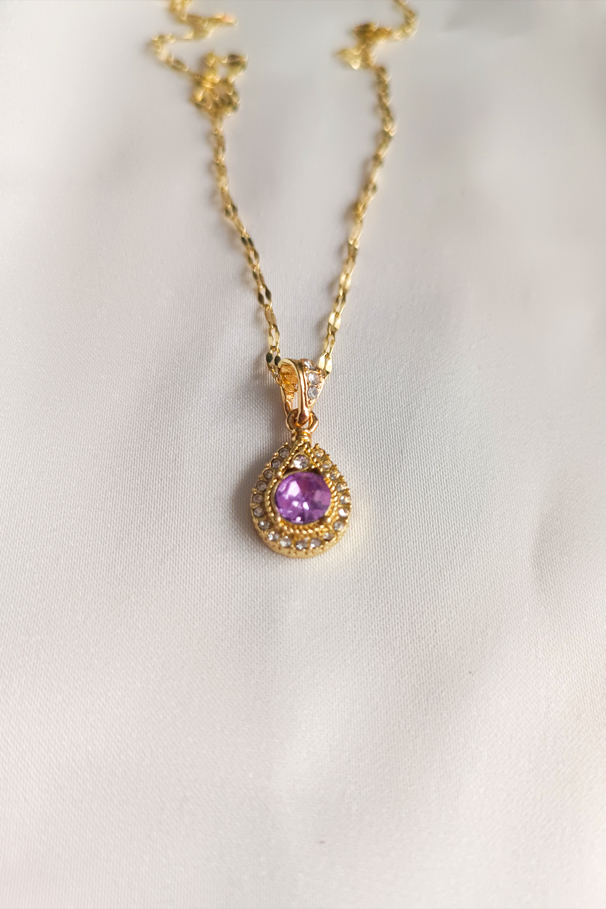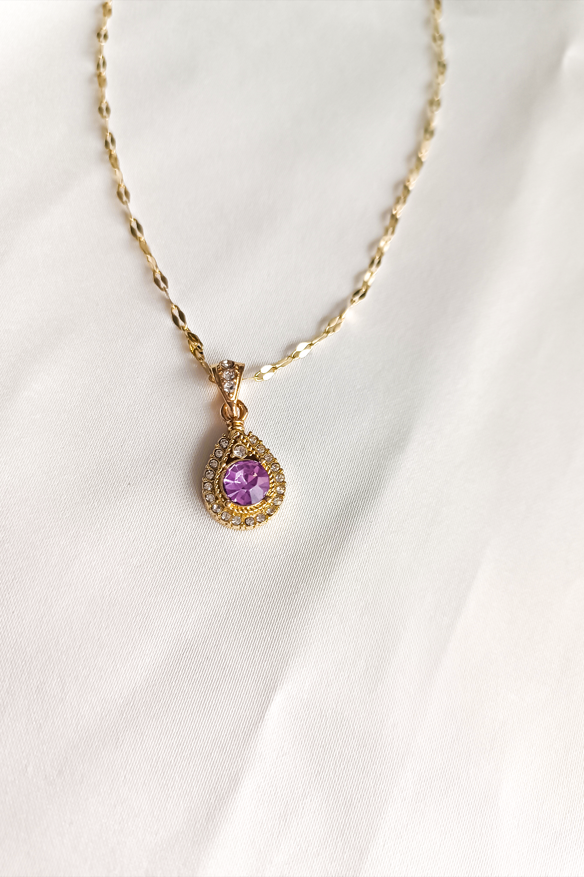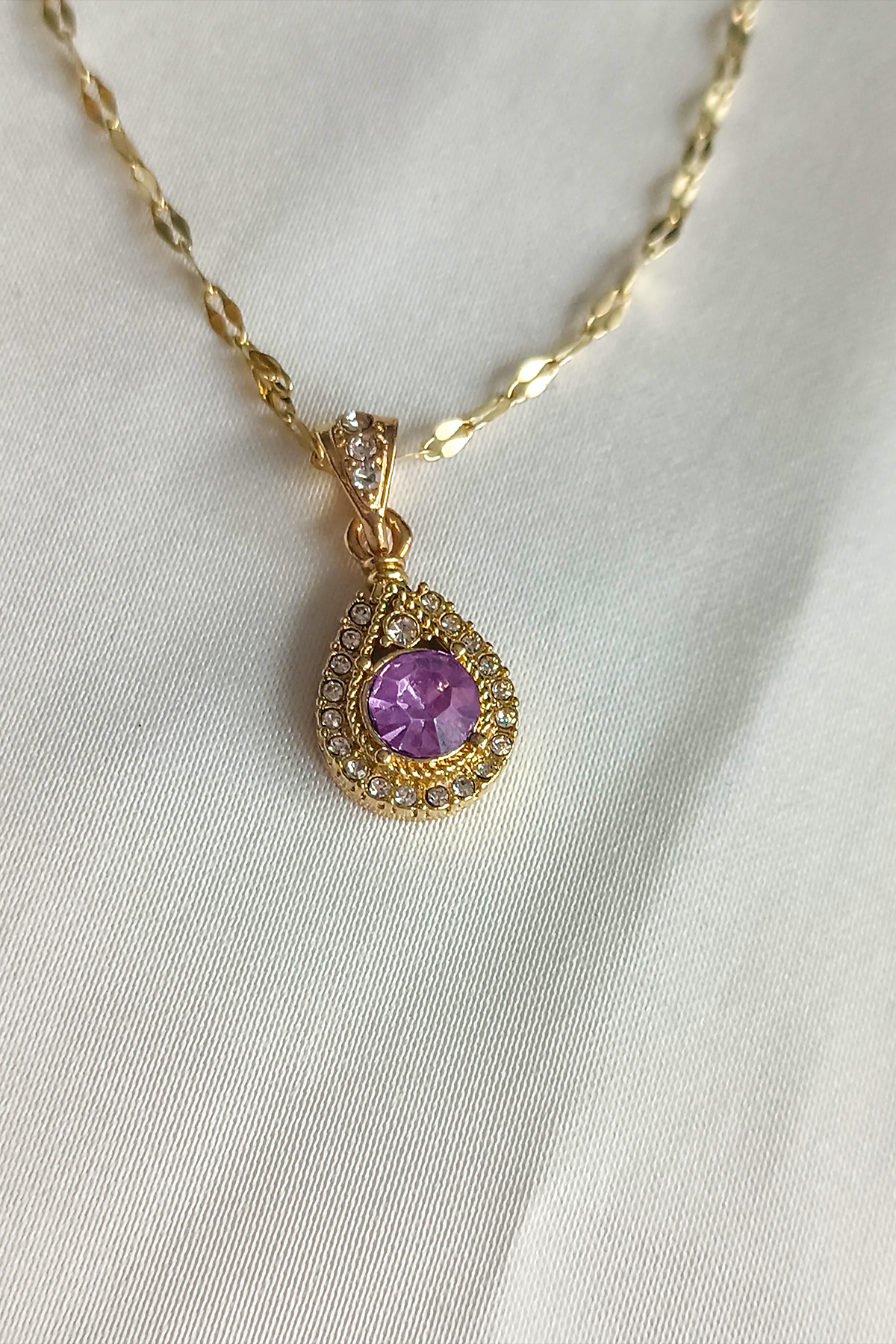 Su Damlası Mor Renk Kolye Çelik Malzeme