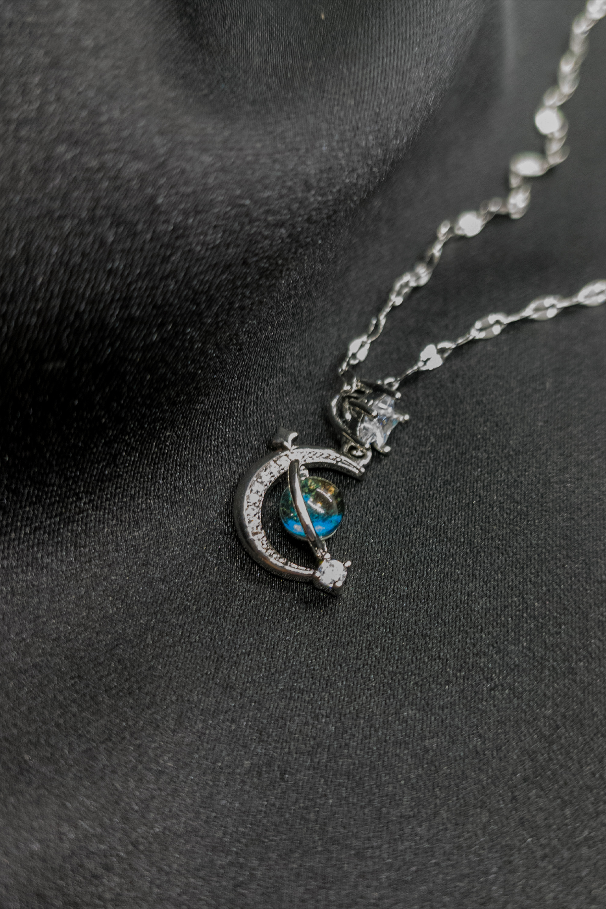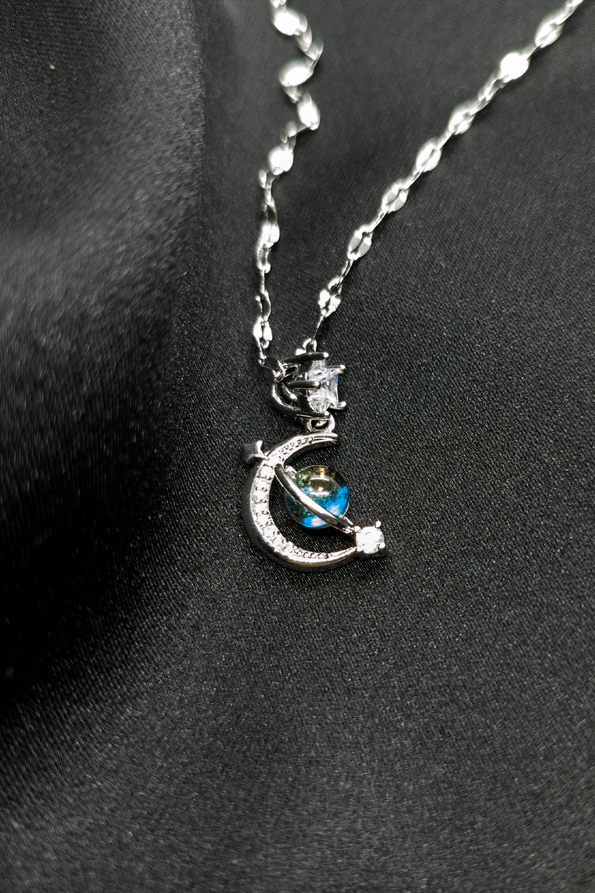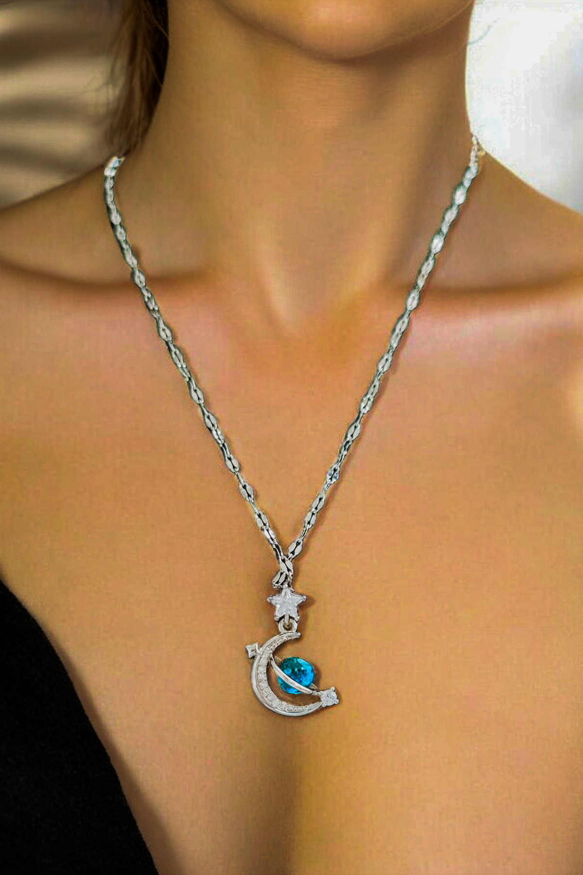 Ay Işığı Gümüş Renk Kolye Ve Saç Tokası