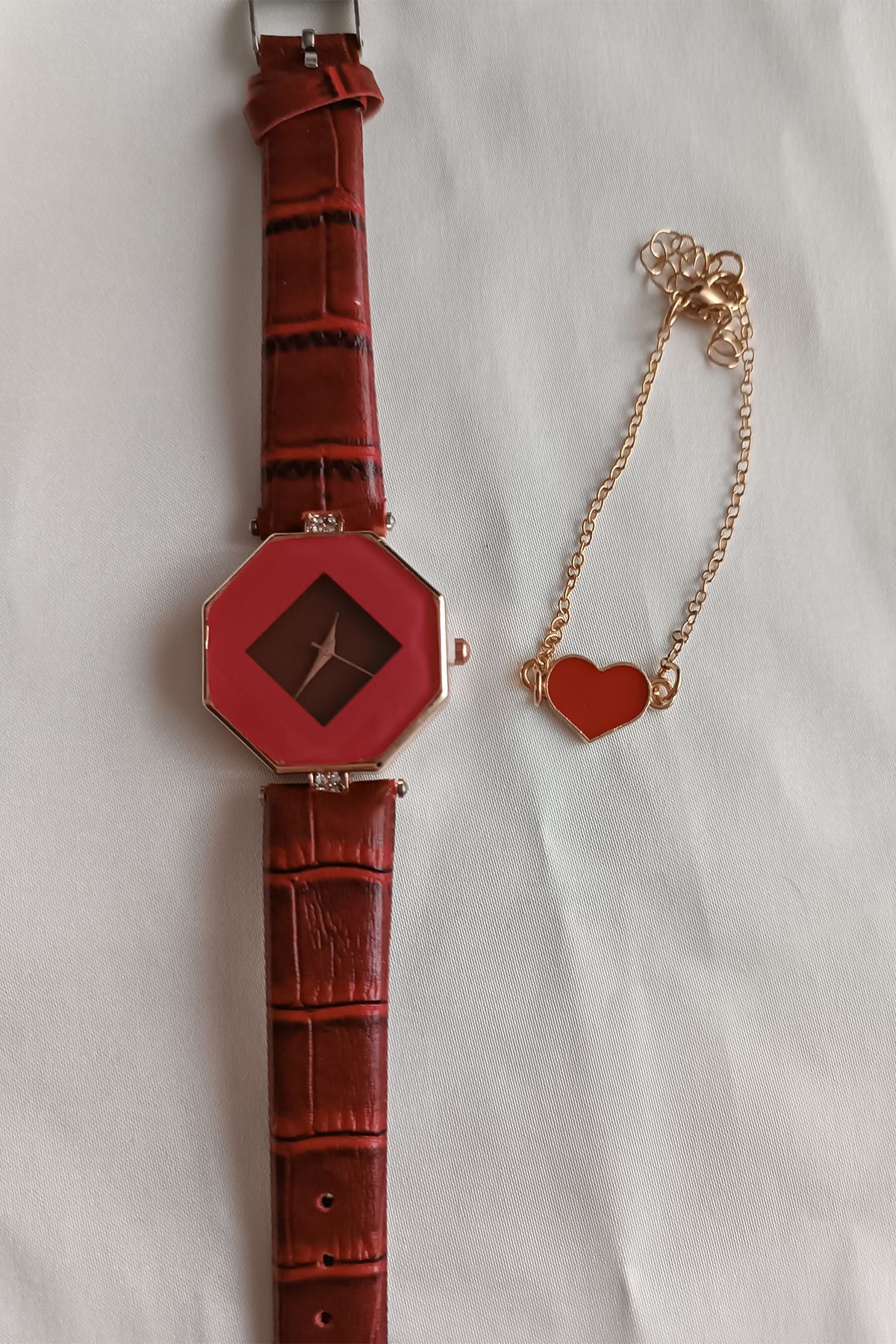 Kırmızı Çok Gen Kadın Kol Saati + Bileklik