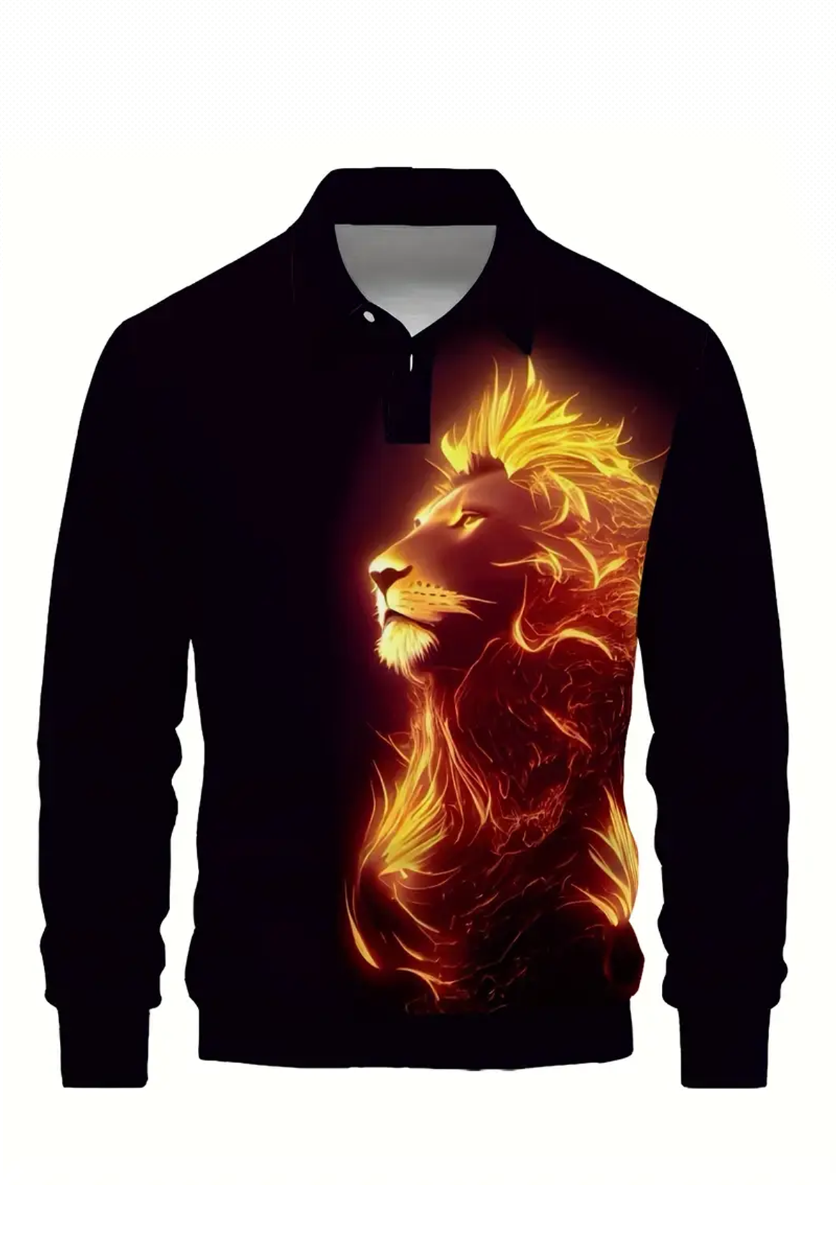 Alev Aslanı Tasarımlı Erkek Tshirt - Sonbahar/Kış, Polyester, Hafif Esnek, Düzenli Kesim