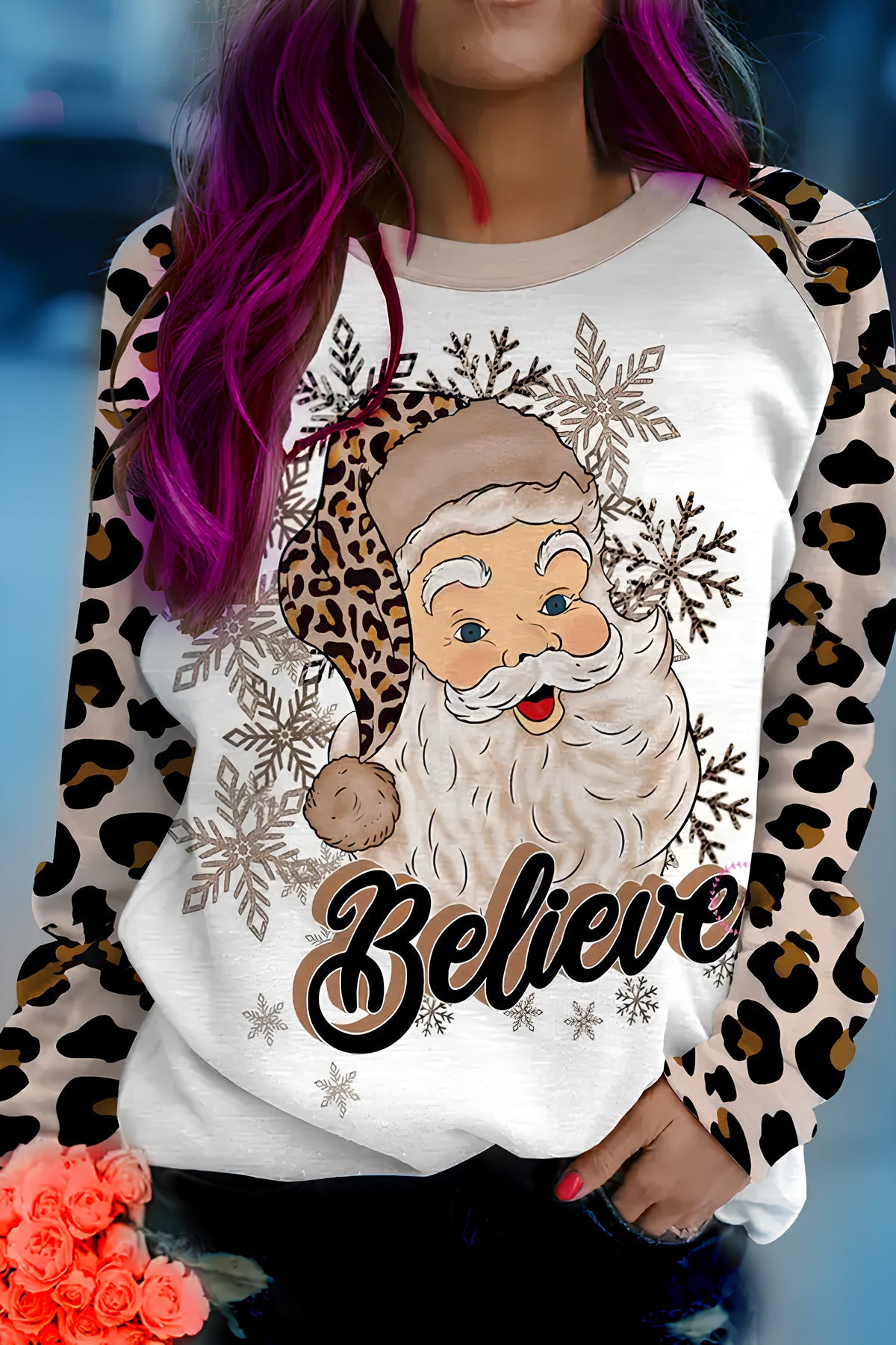 Leopar Desenli Noel Baba Baskılı Hoodie/Sweatshirt