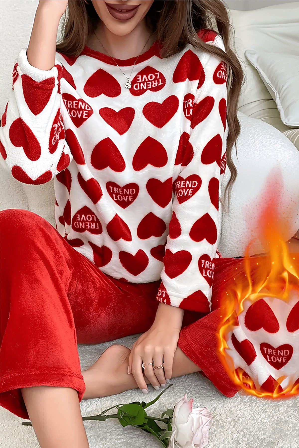 Kırmızı Renk Trend Love Desenli Kadın Eşofman Takımı - Sonbahar ve Kış İçin Sıcak ve Şık