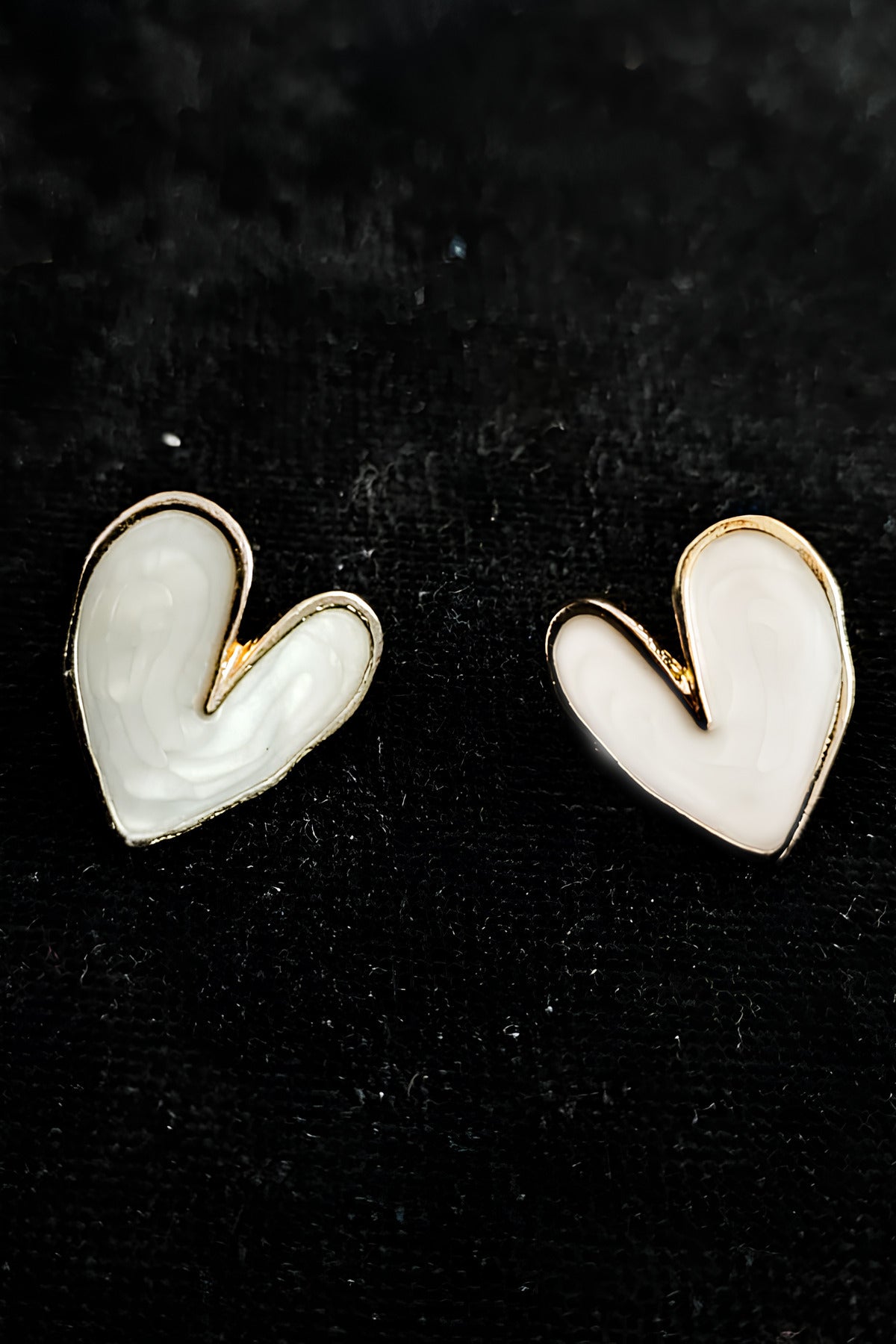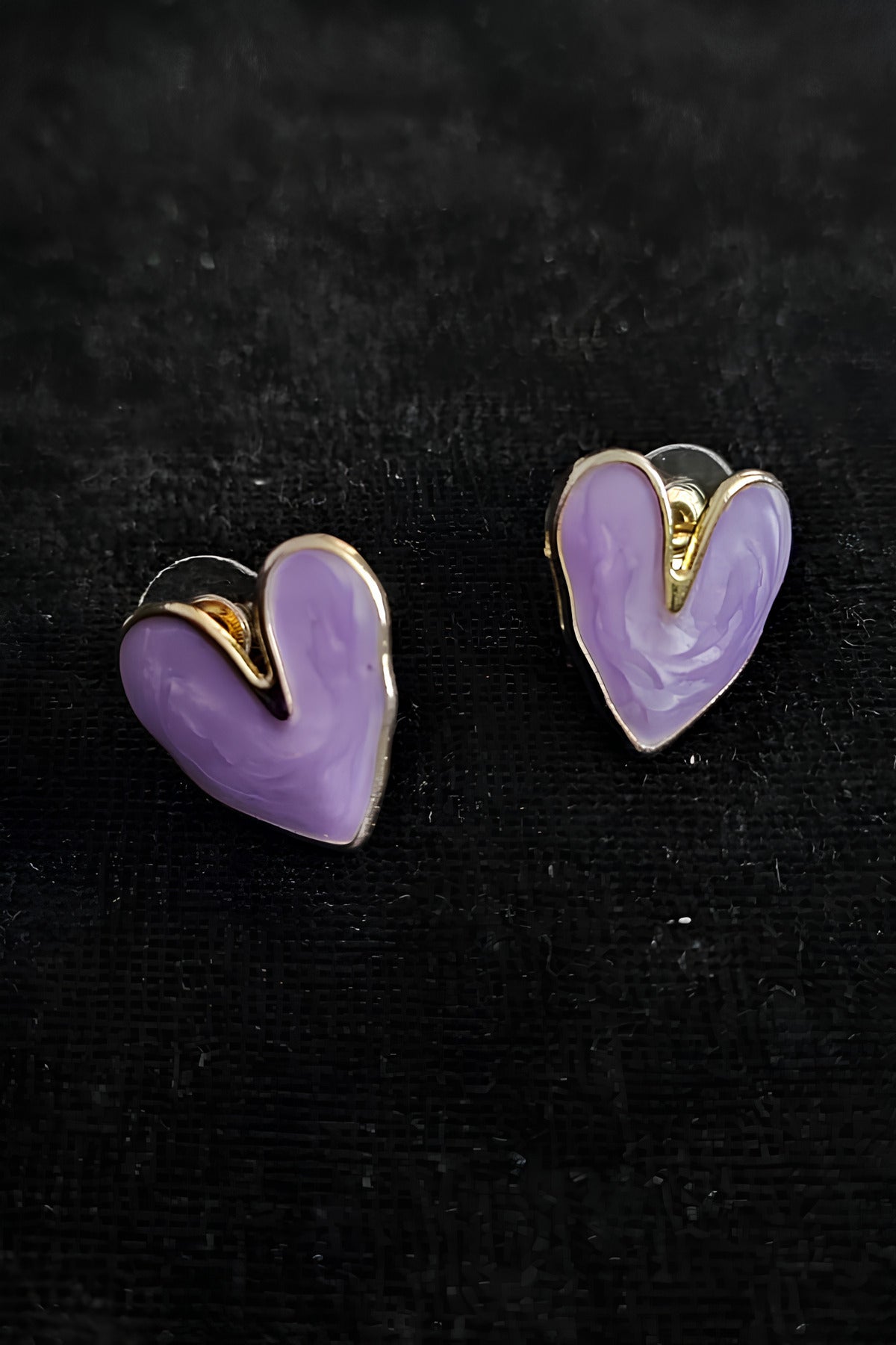 Paslanmaz Çelik Kalp Şekilli Küpe Seti - Beyaz ve Mor Minimalist Tasarım