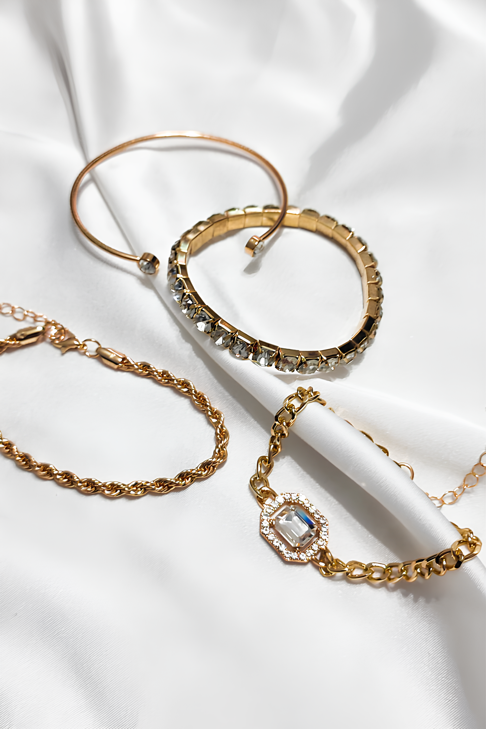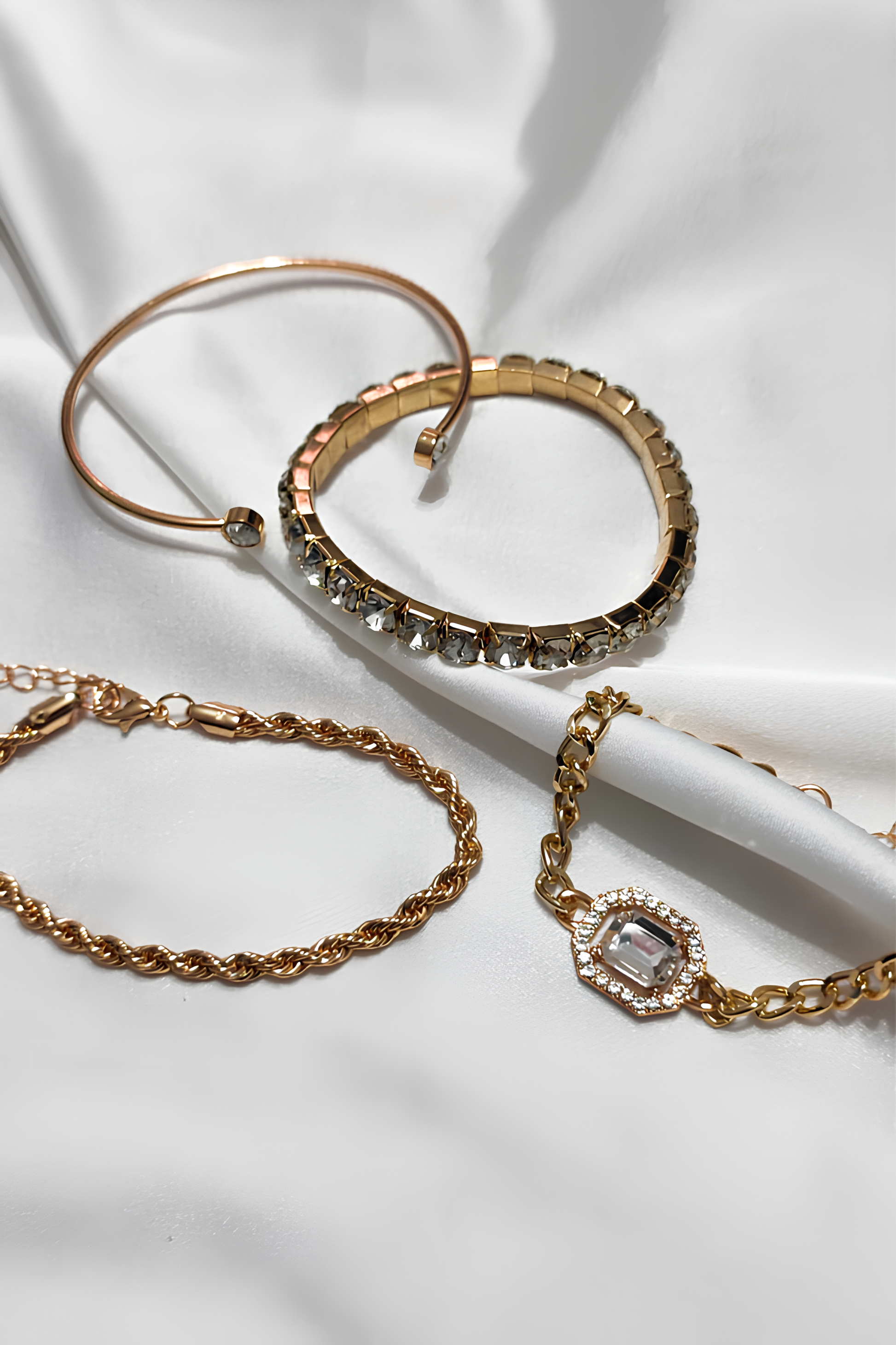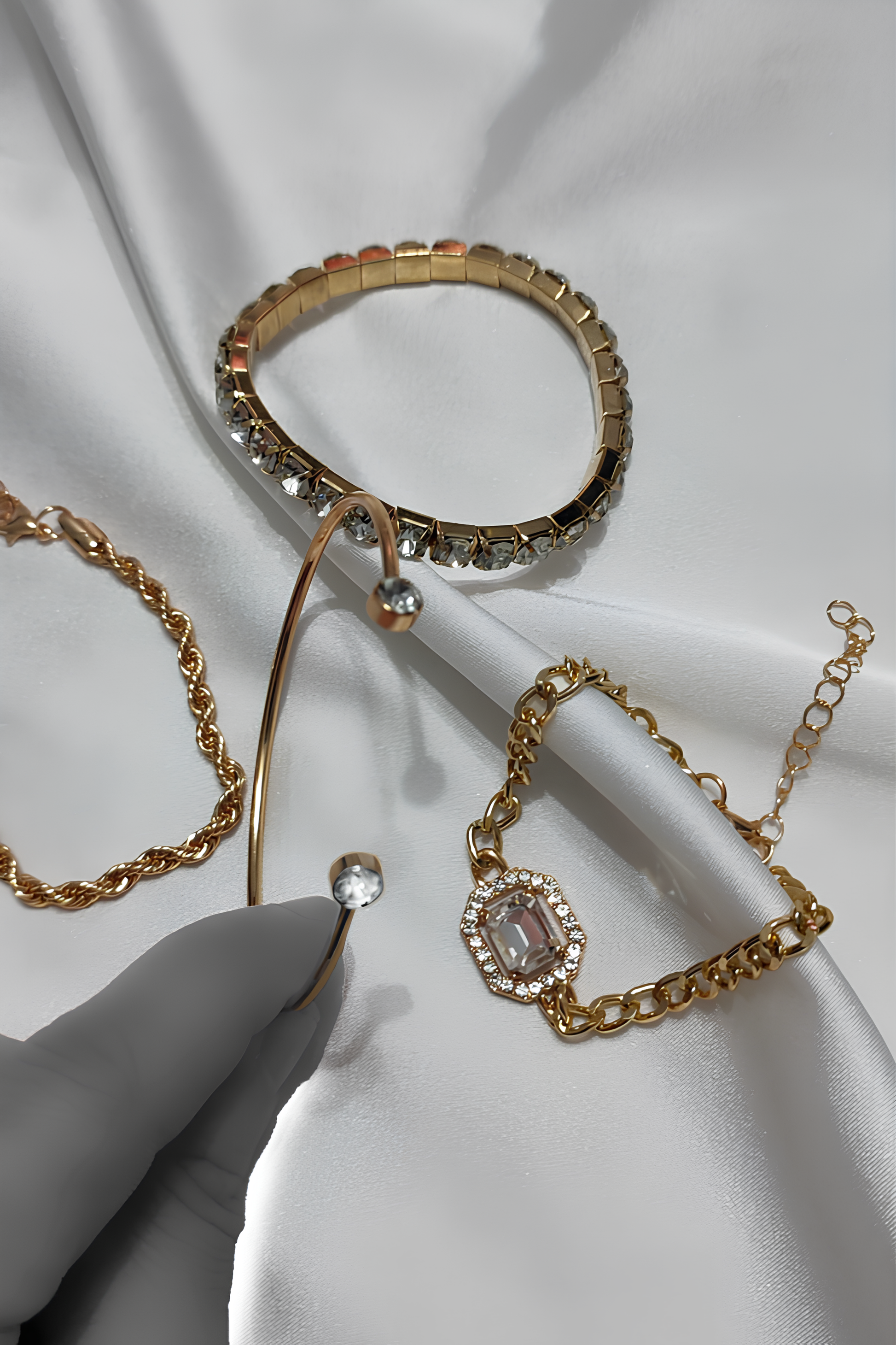 - Genç ve dinamik tarzınızı yansıtan, altın rengi çelik bileklik seti ile şıklığınızı tamamlayın.; - Dayanıklı çelik materyal bileşeni sayesinde uzun süreli kullanım için idealdir.; - Göz alıcı zirkon taş detayları ile her türlü kıyafetinizle uyum sağlar ve dikkat çekici bir aksesuar oluşturur.; - Kadın ve kızlar için özel olarak tasarlanmış, zarif tasarımıyla günlük kullanımın yanı sıra özel günlerde de tercih edilebilir.; - Garantisiz olmasına rağmen, kalitesiyle öne çıkan bu bileklik seti, güvenle kullanabileceğiniz bir aksesuardır.