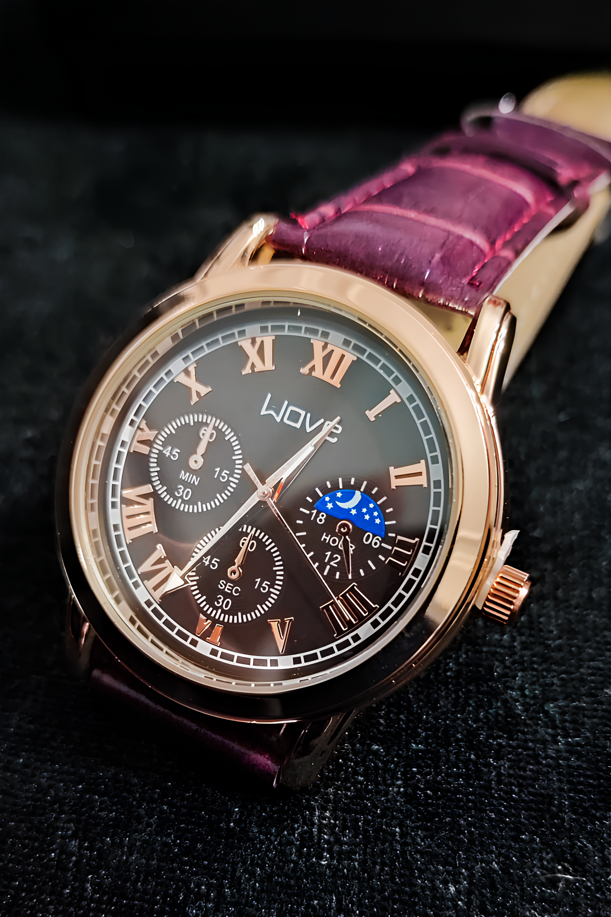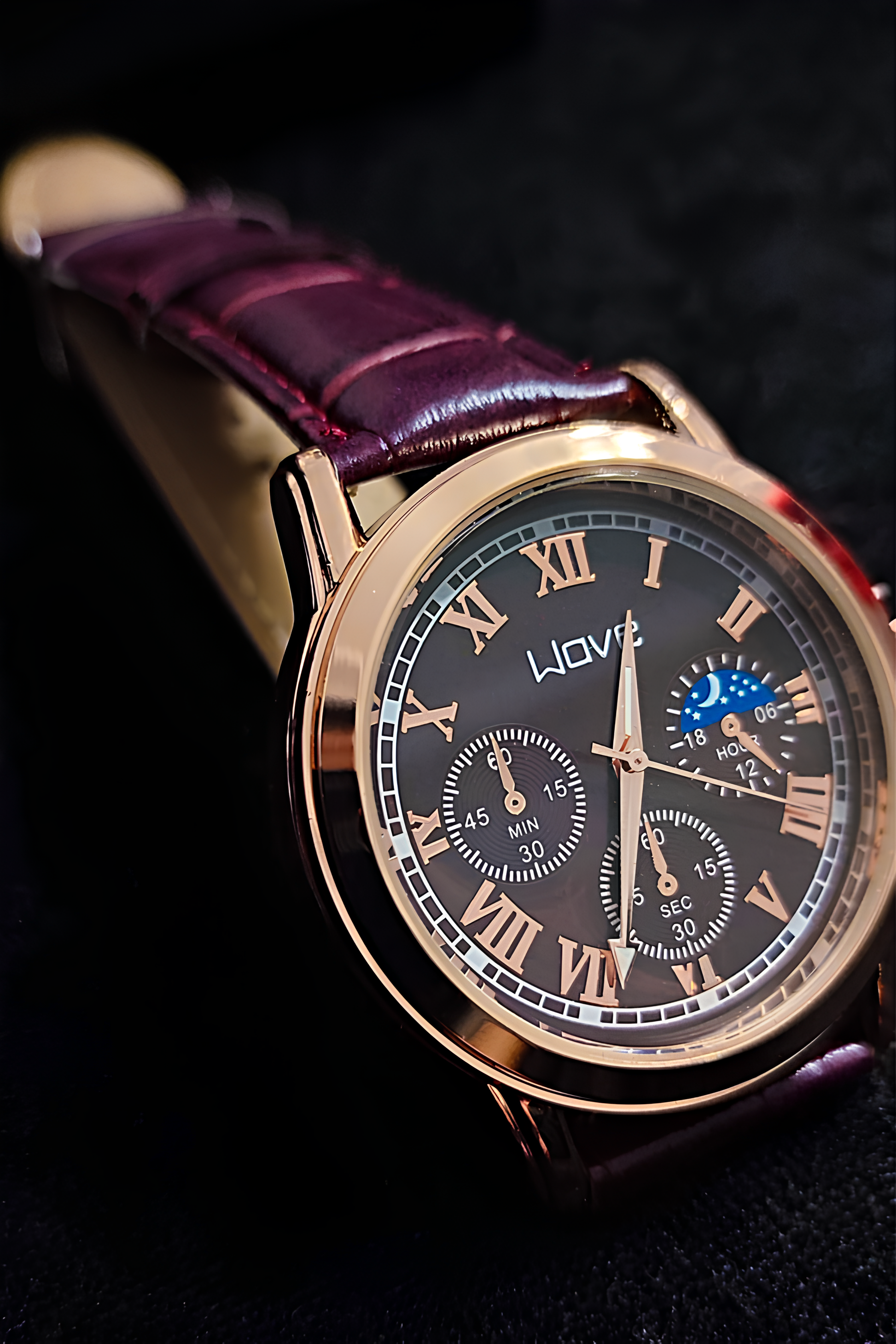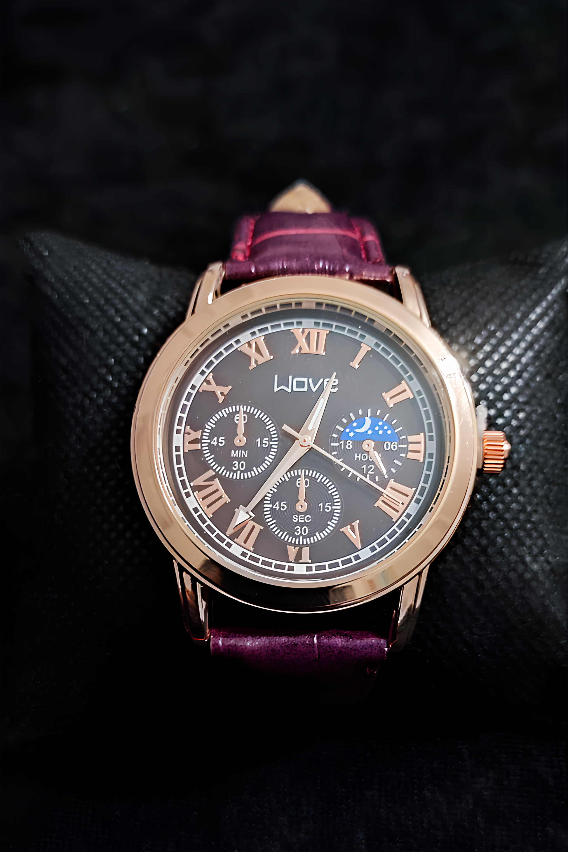 Bordo Deri Kordonlu Rose Gold Unisex - Erkek, Kadın Kol Saati