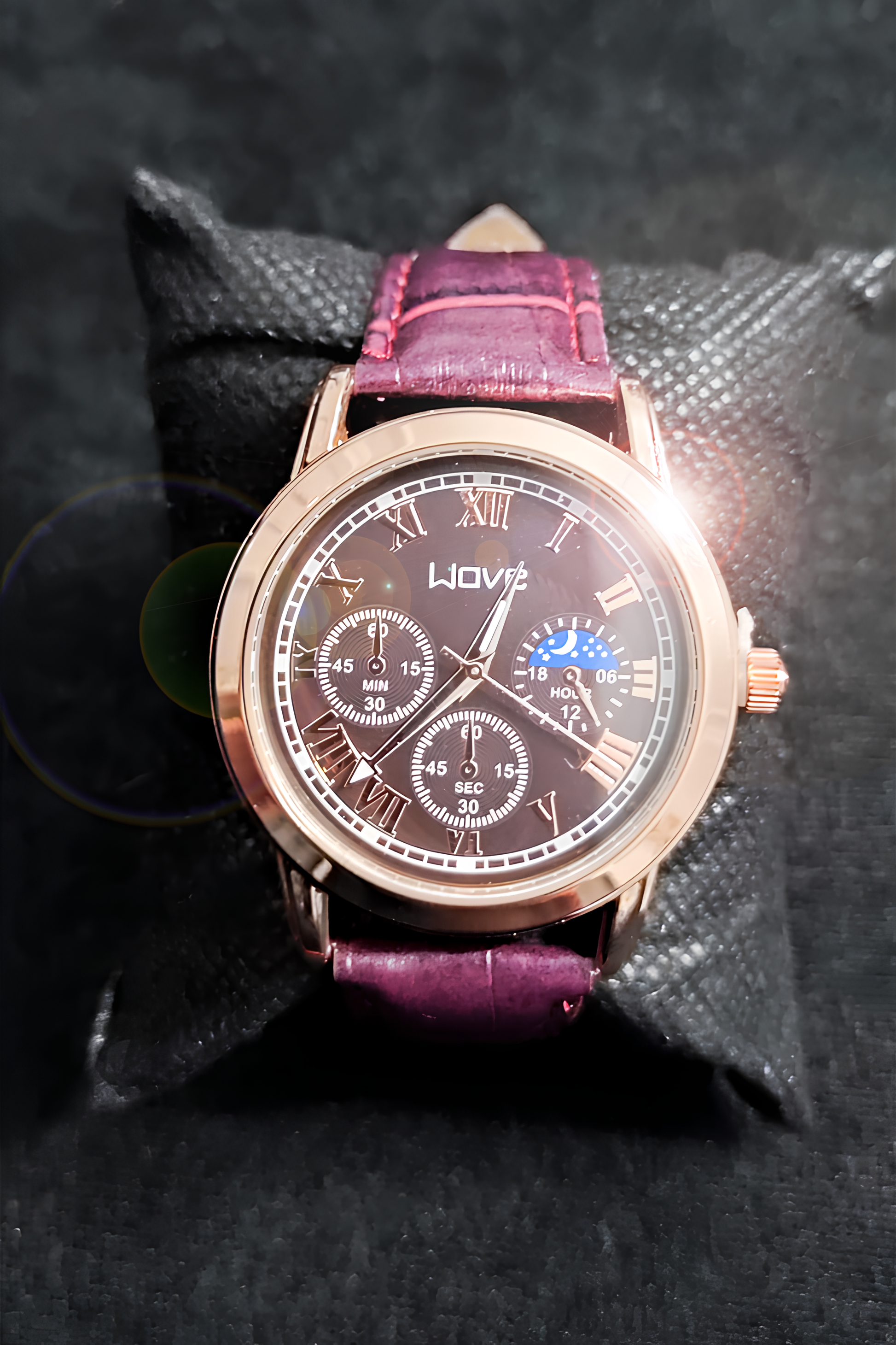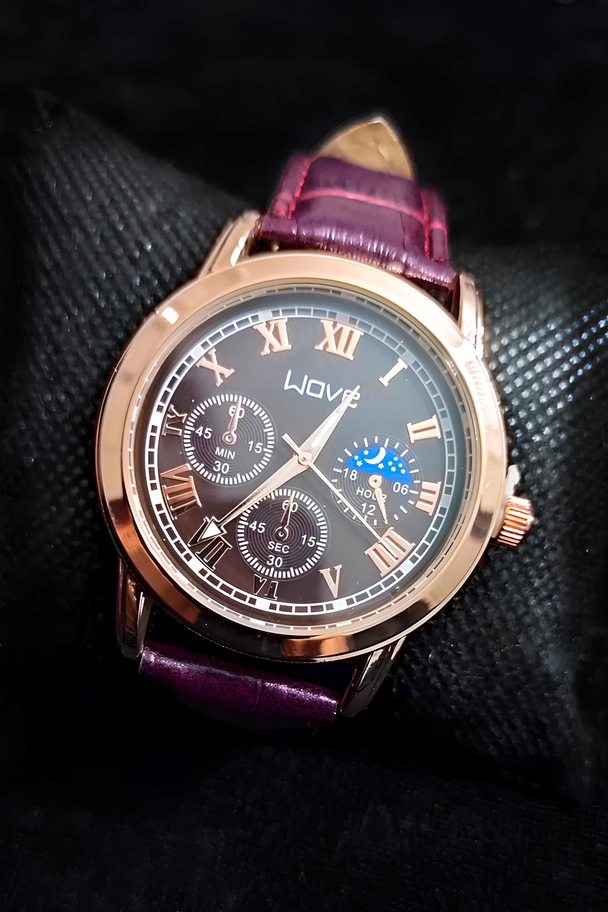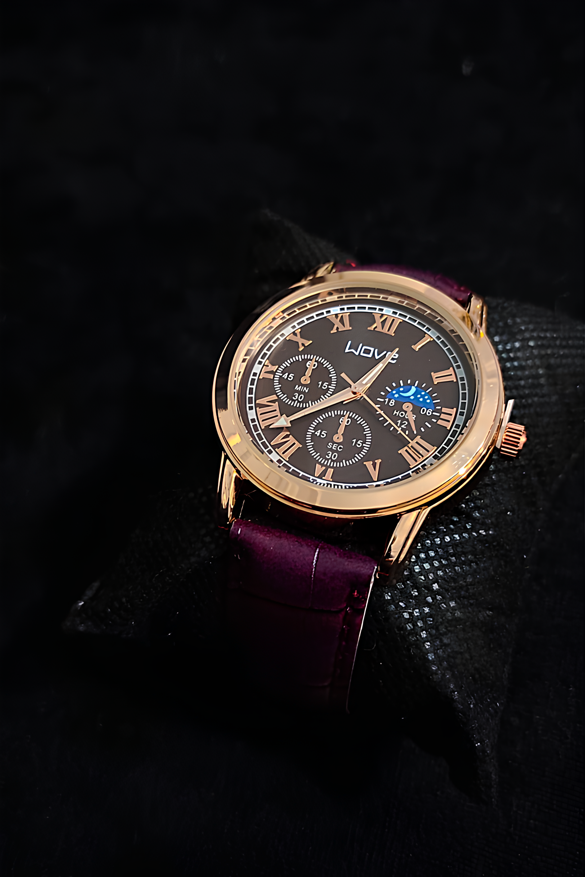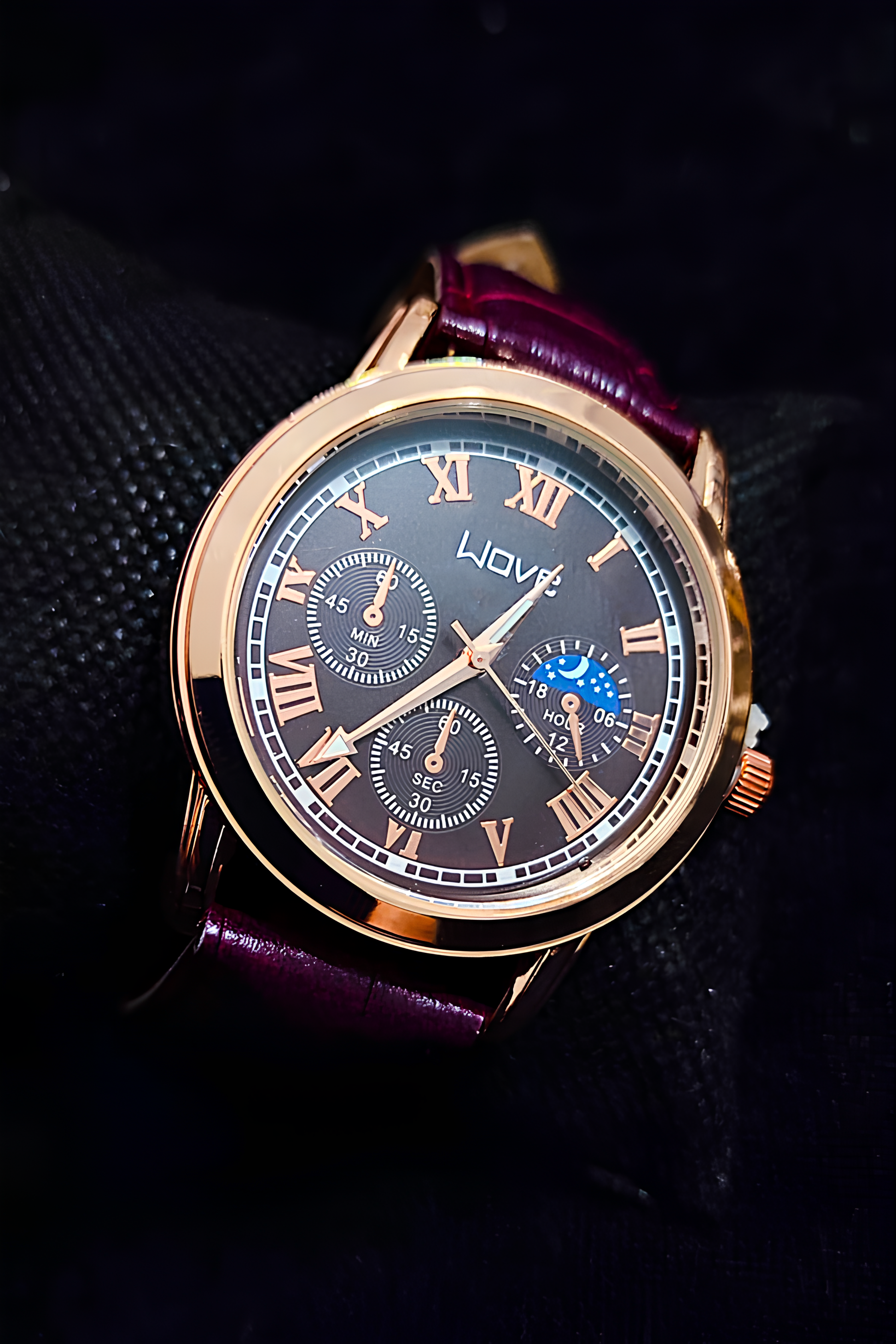 Bordo Deri Kordonlu Rose Gold Unisex - Erkek, Kadın Kol Saati