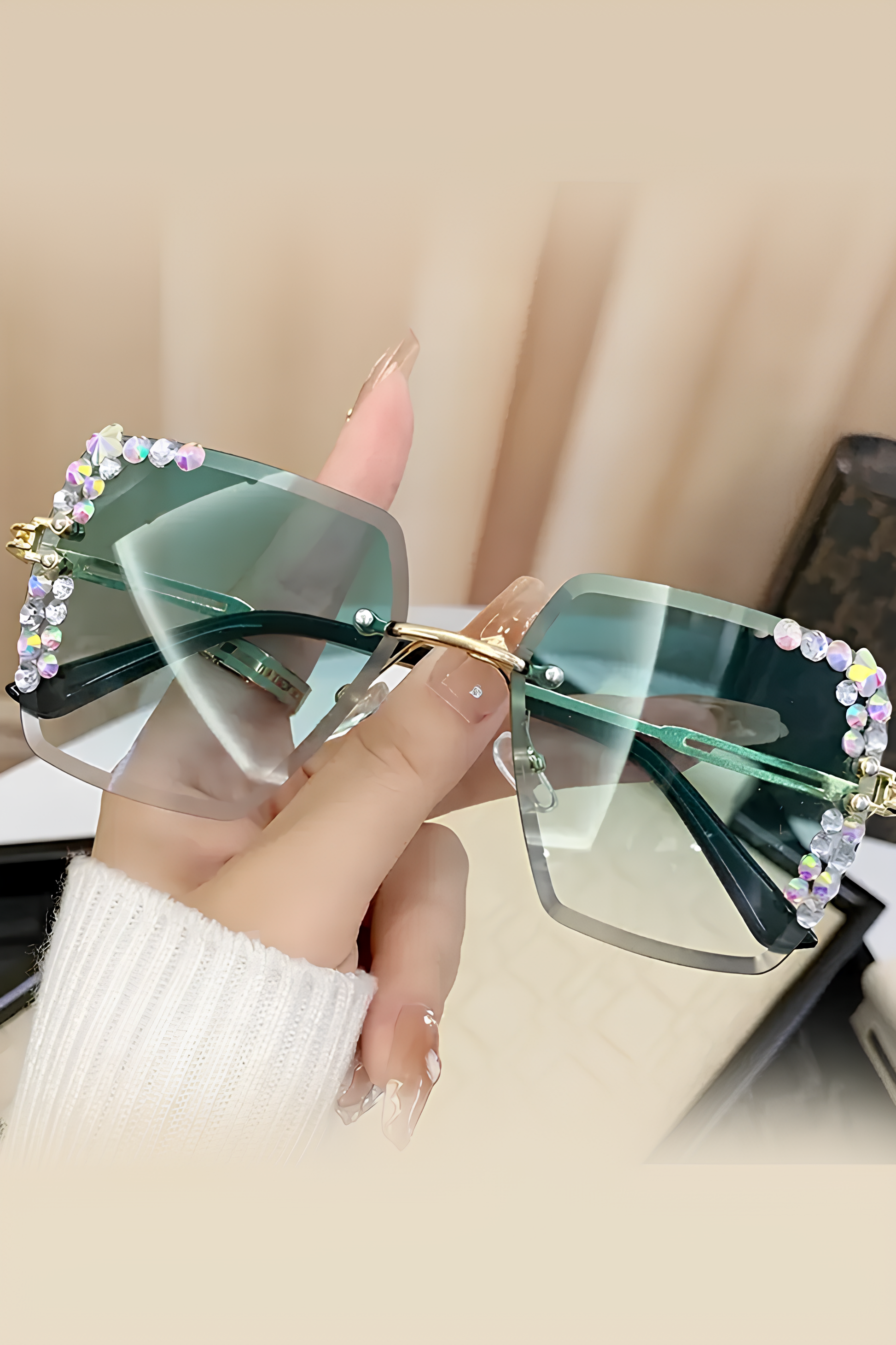 Şık Taş Süslemeli Yeşil Güneş Gözlüğü