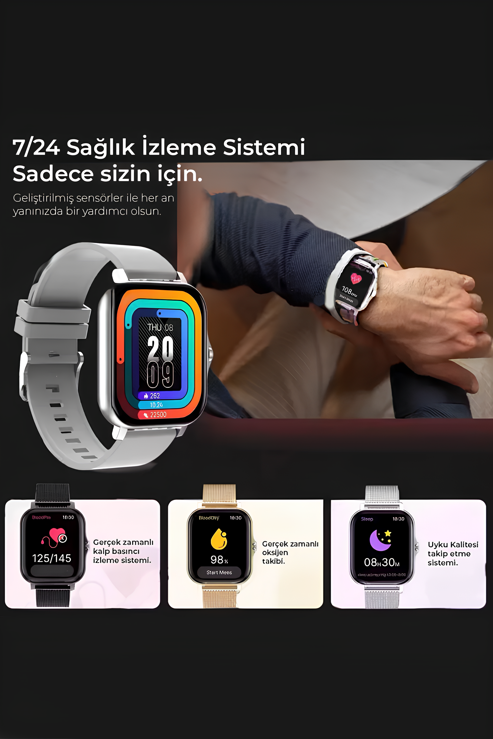 Akıllı Saat Yüzlerce Mod + Ekstra Metal Kordon Hediyeli!