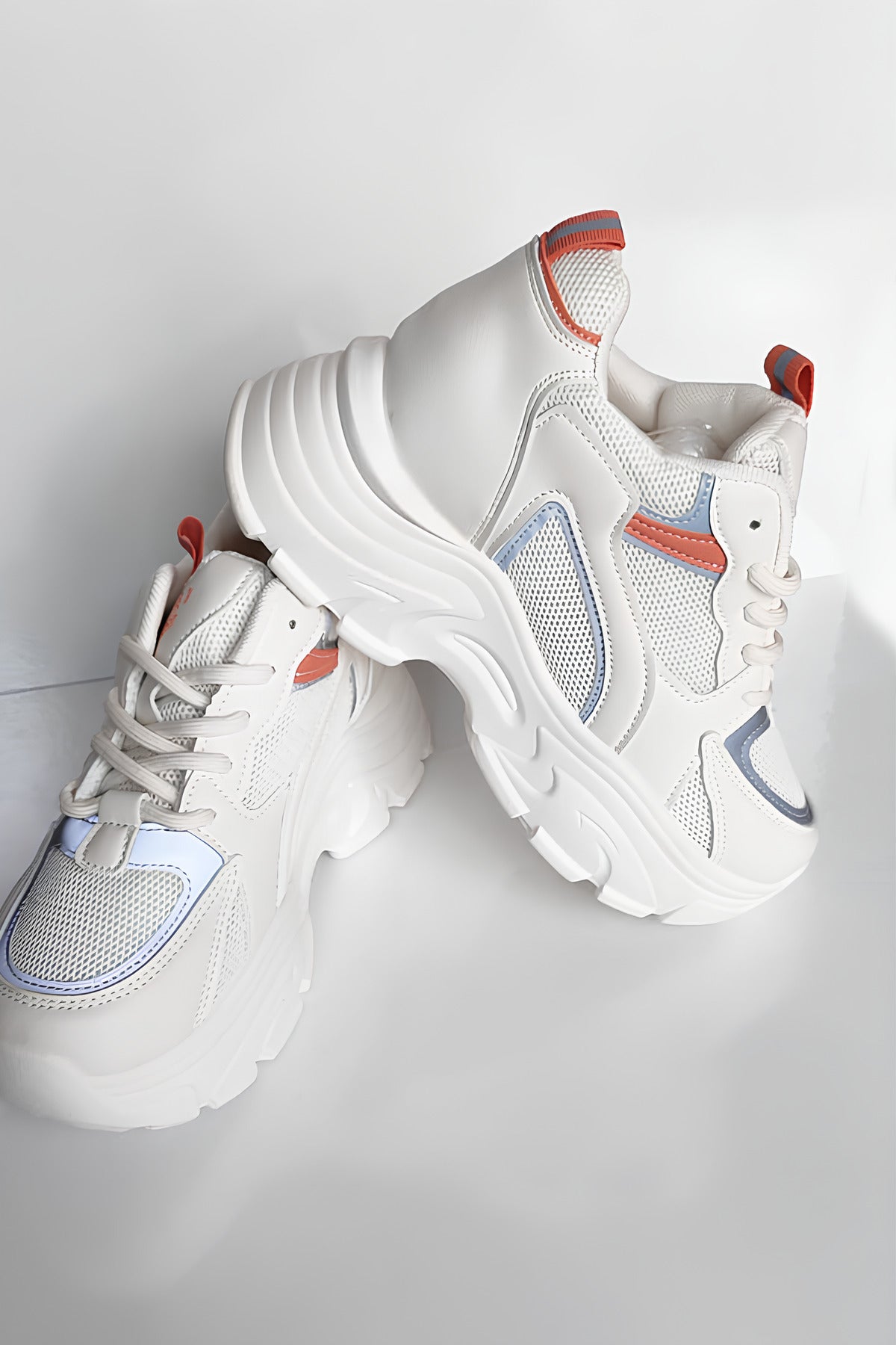 Beyaz Renk Turuncu ve Mavi Detaylı Kadın Spor Ayakkabı – Rahat ve Şık Günlük Kullanım