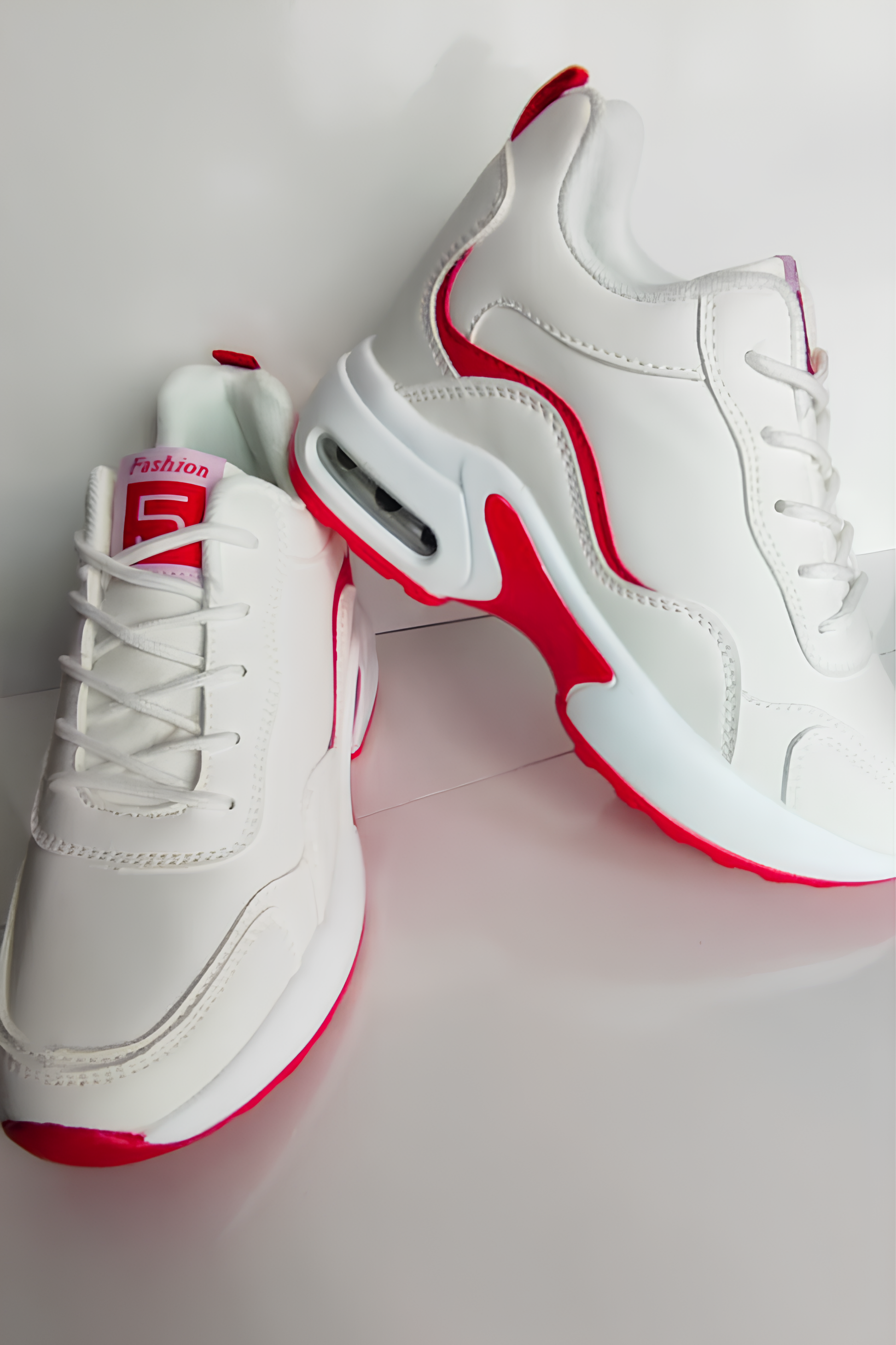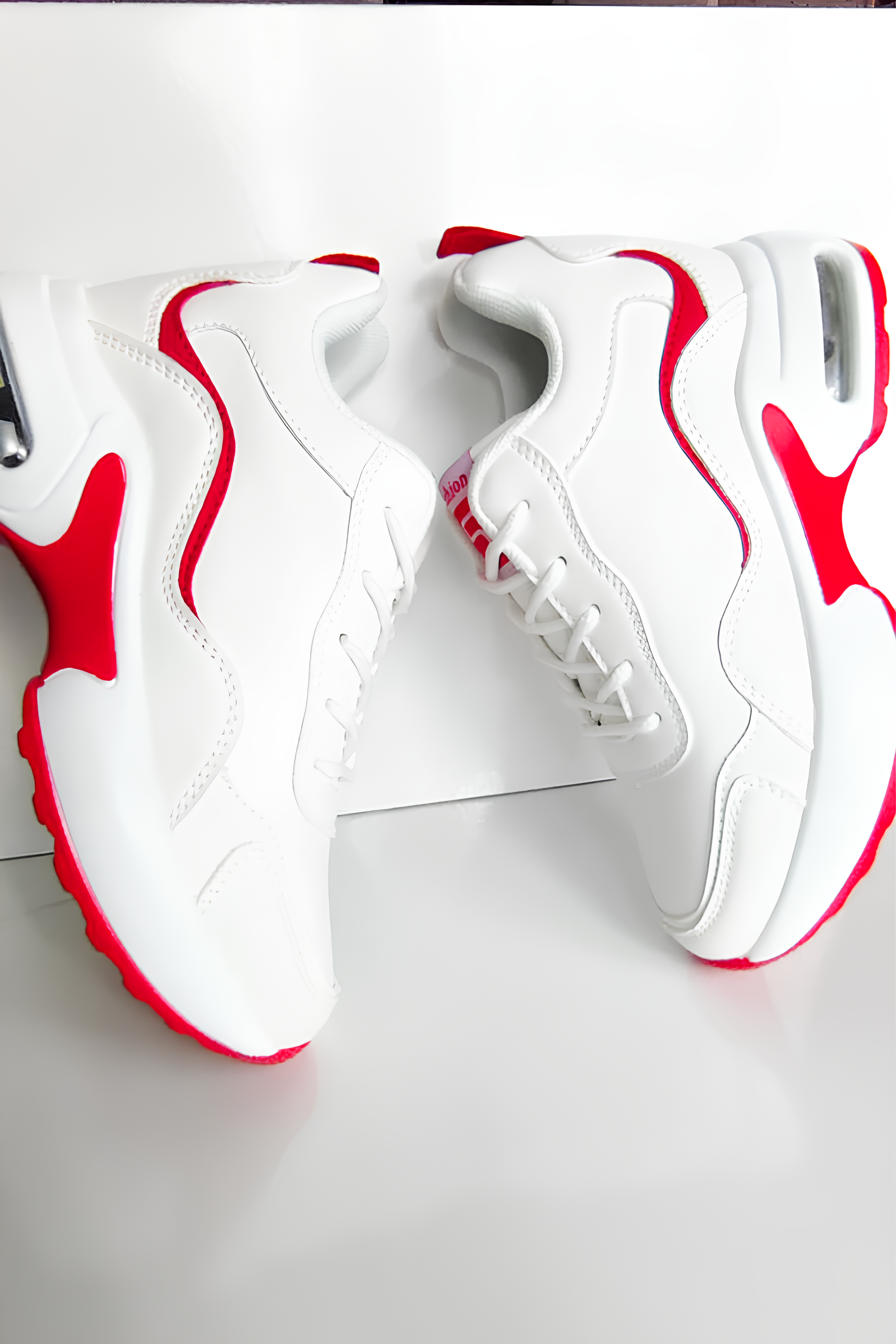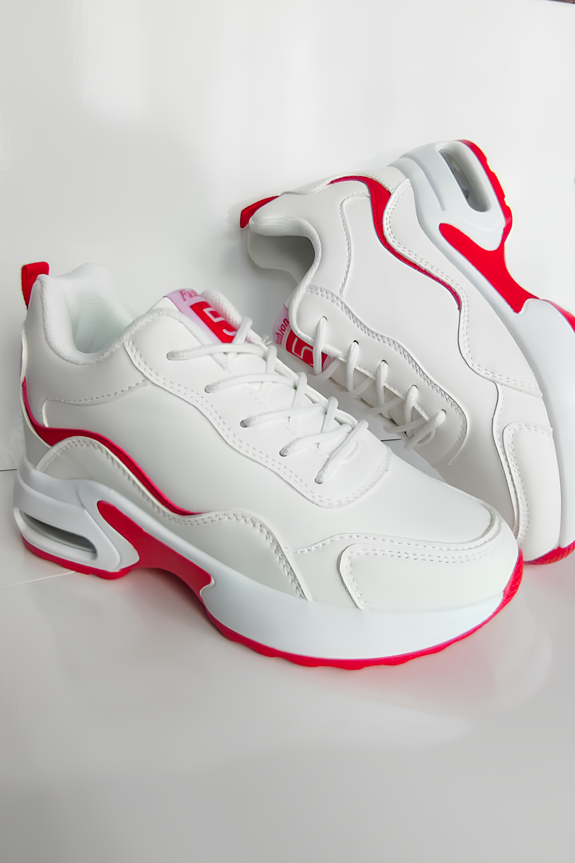 Unisex Beyaz Kırmızı Spor Ayakkabı – Konforlu ve Şık