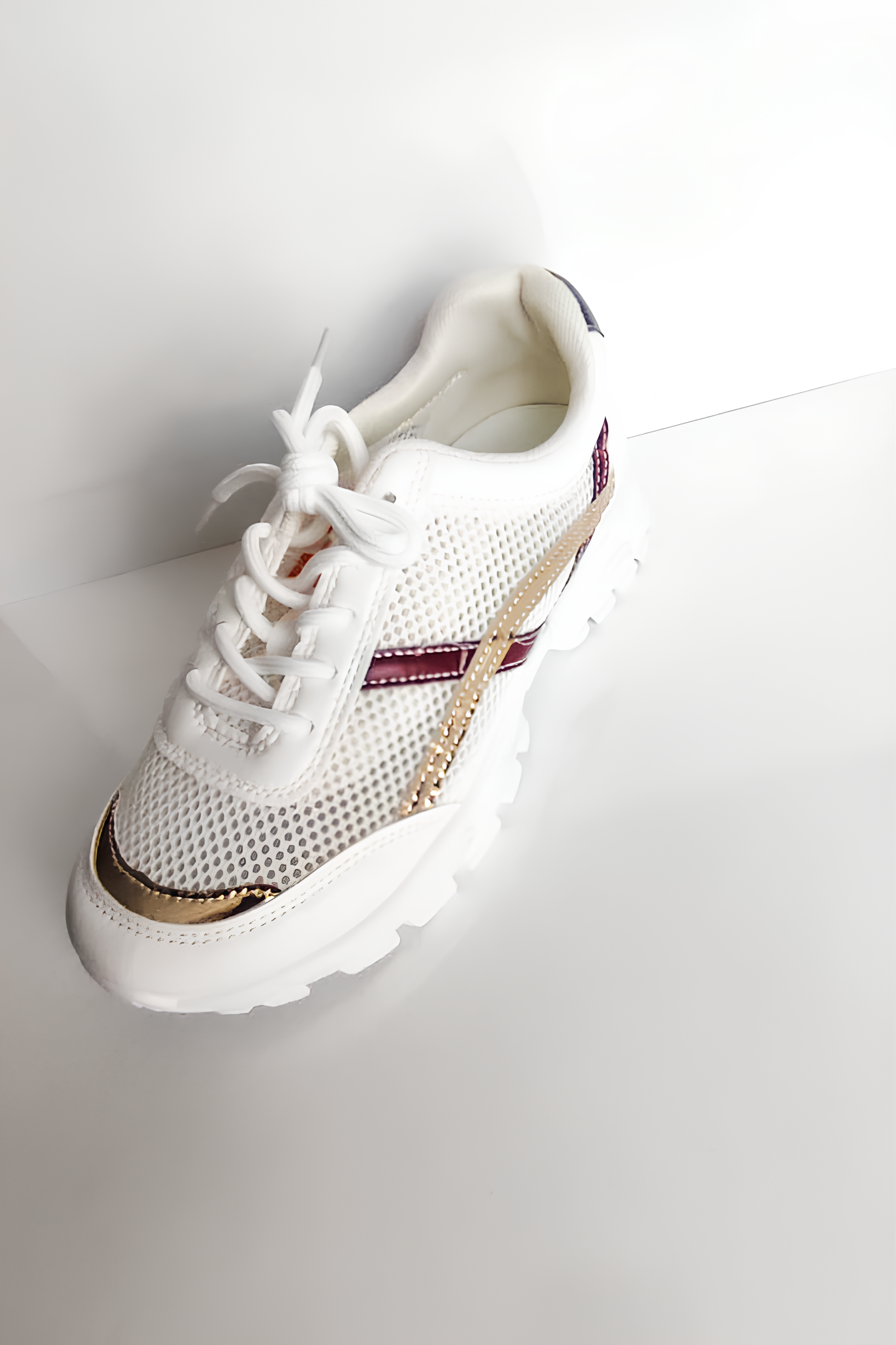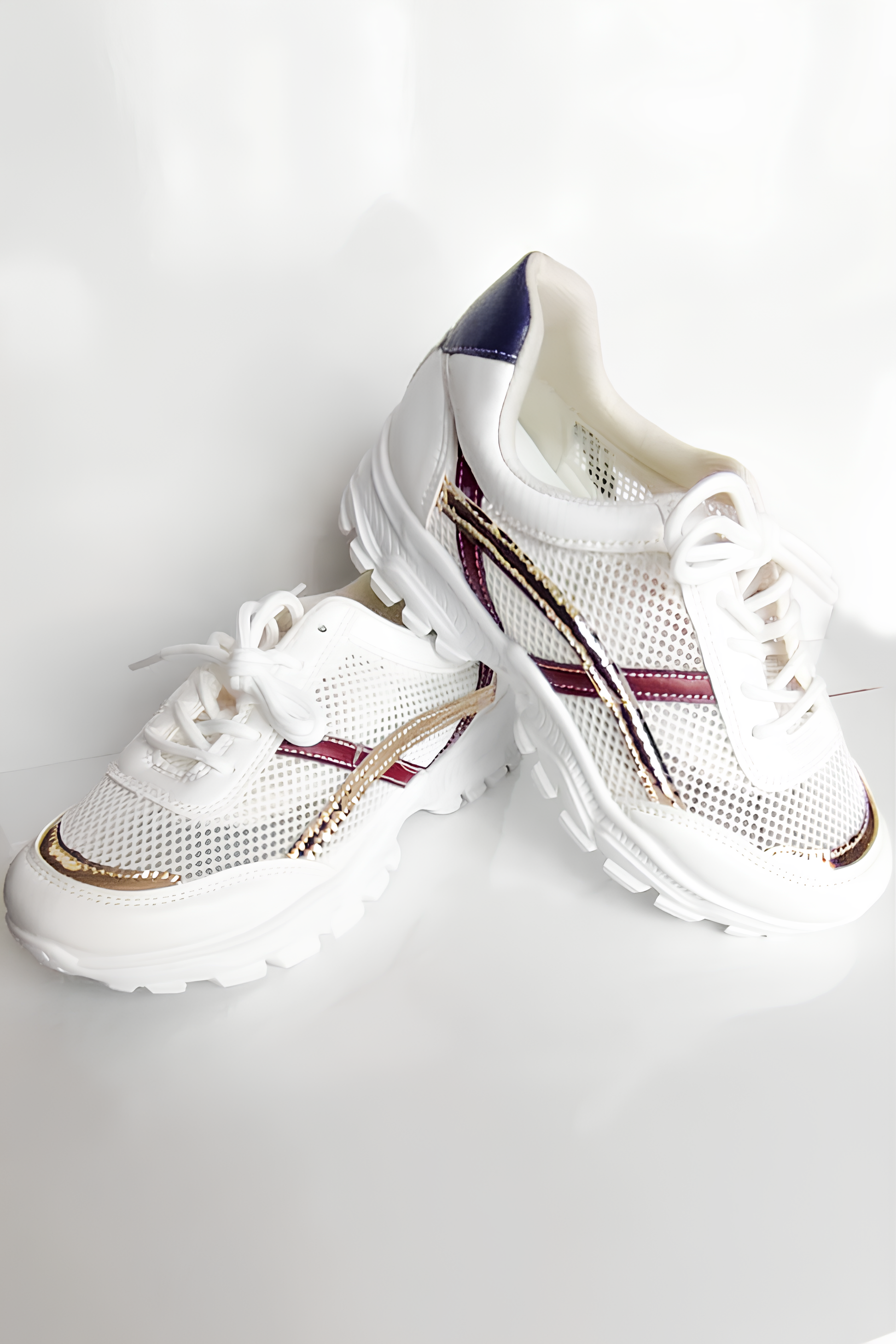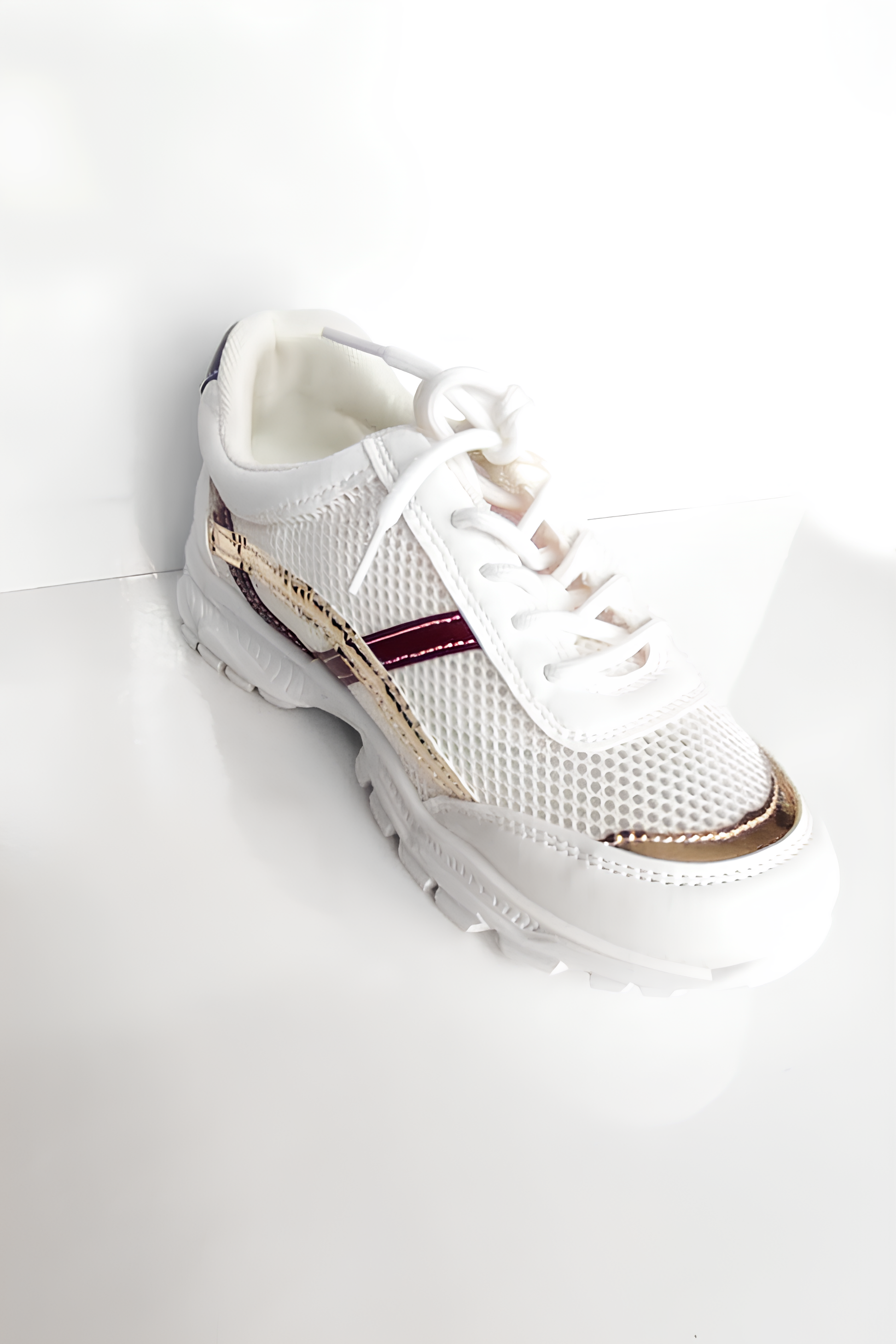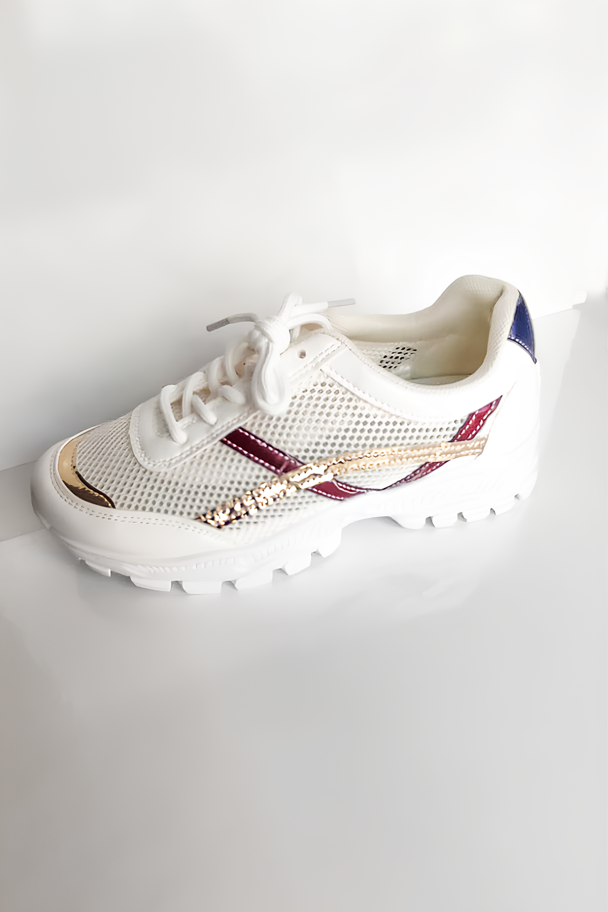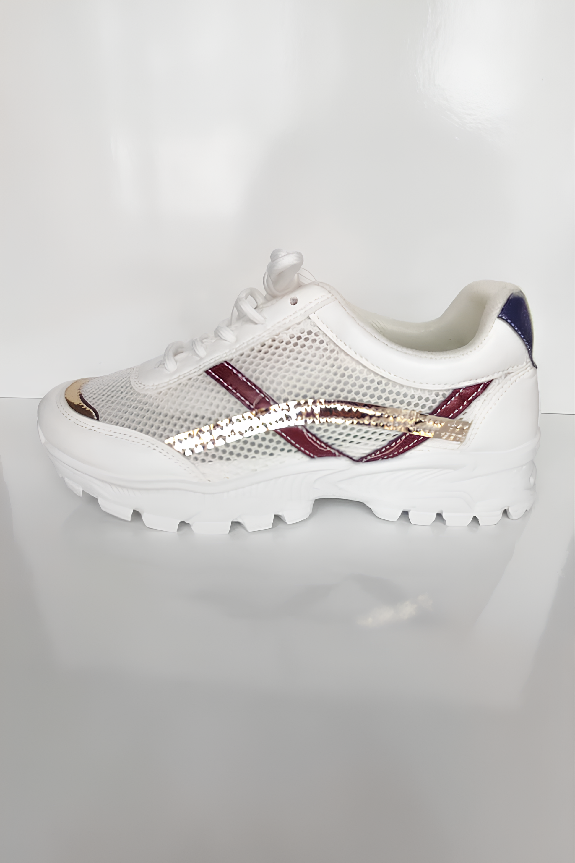 - Rahatlık ve şıklığı bir arada sunan orta topuk boyu (5-9 cm), günlük kullanım için idealdir.; - Beyaz fileli tasarımı ile modern ve dinamik bir görünüm sağlar.; - Kadın ve kız kullanıcılar için uygun olan bu spor ayakkabısı, genç yaş grubuna hitap eder.; - Çin menşeli üretim kalitesiyle dayanıklılık ve konforu garanti eder.; - Casual ve günlük ortamlarda rahatlıkla tercih edilebilecek tarzda tasarlanmıştır.