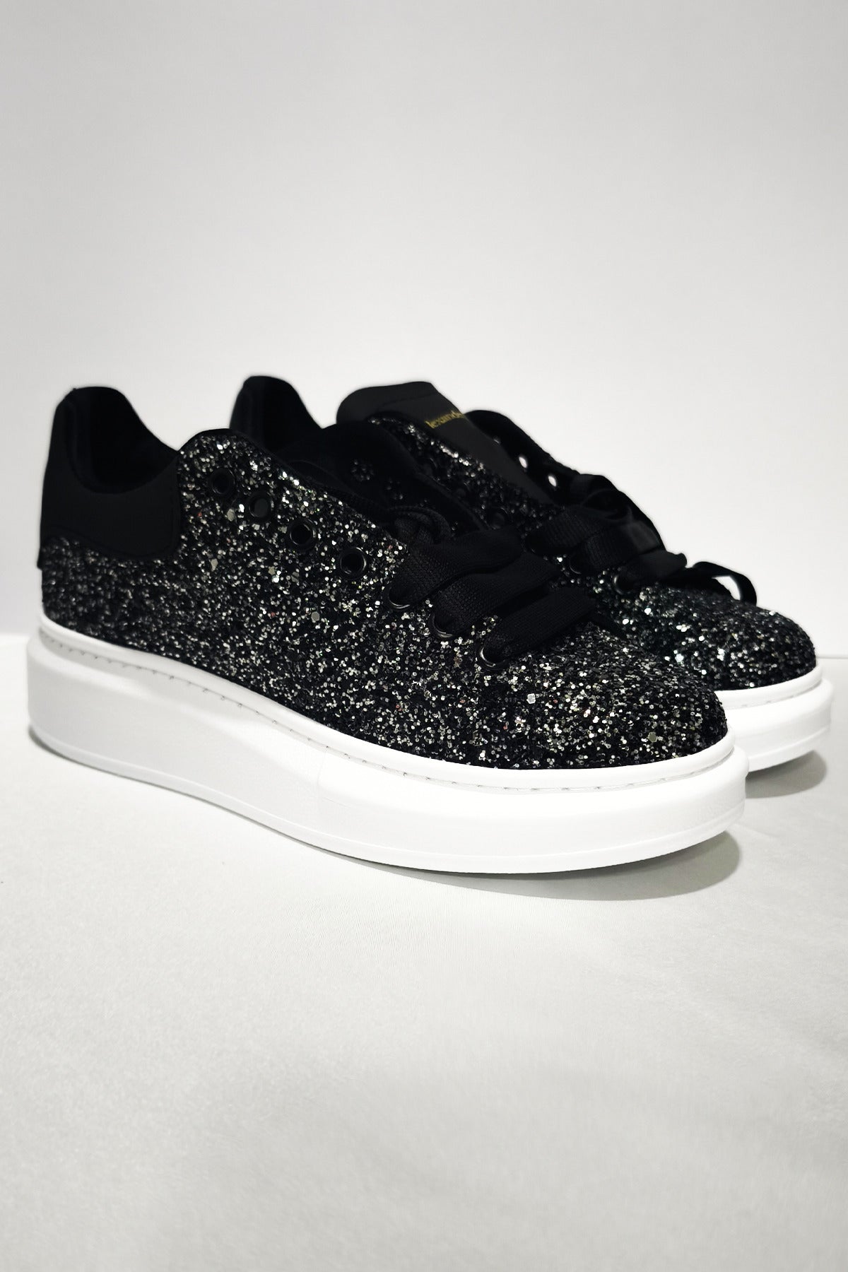 Işıltılı Siyah Taş Detaylı Kadın Spor Ayakkabı – Kalın Taban, Günlük ve Şık Kullanım
