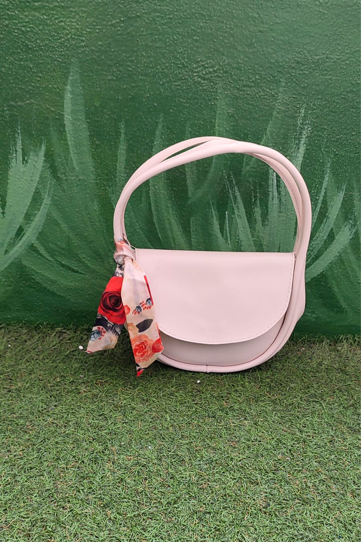 Kadın Omuz Çantası – Pudra Rengi & Çiçek Desenli Fular Detaylı