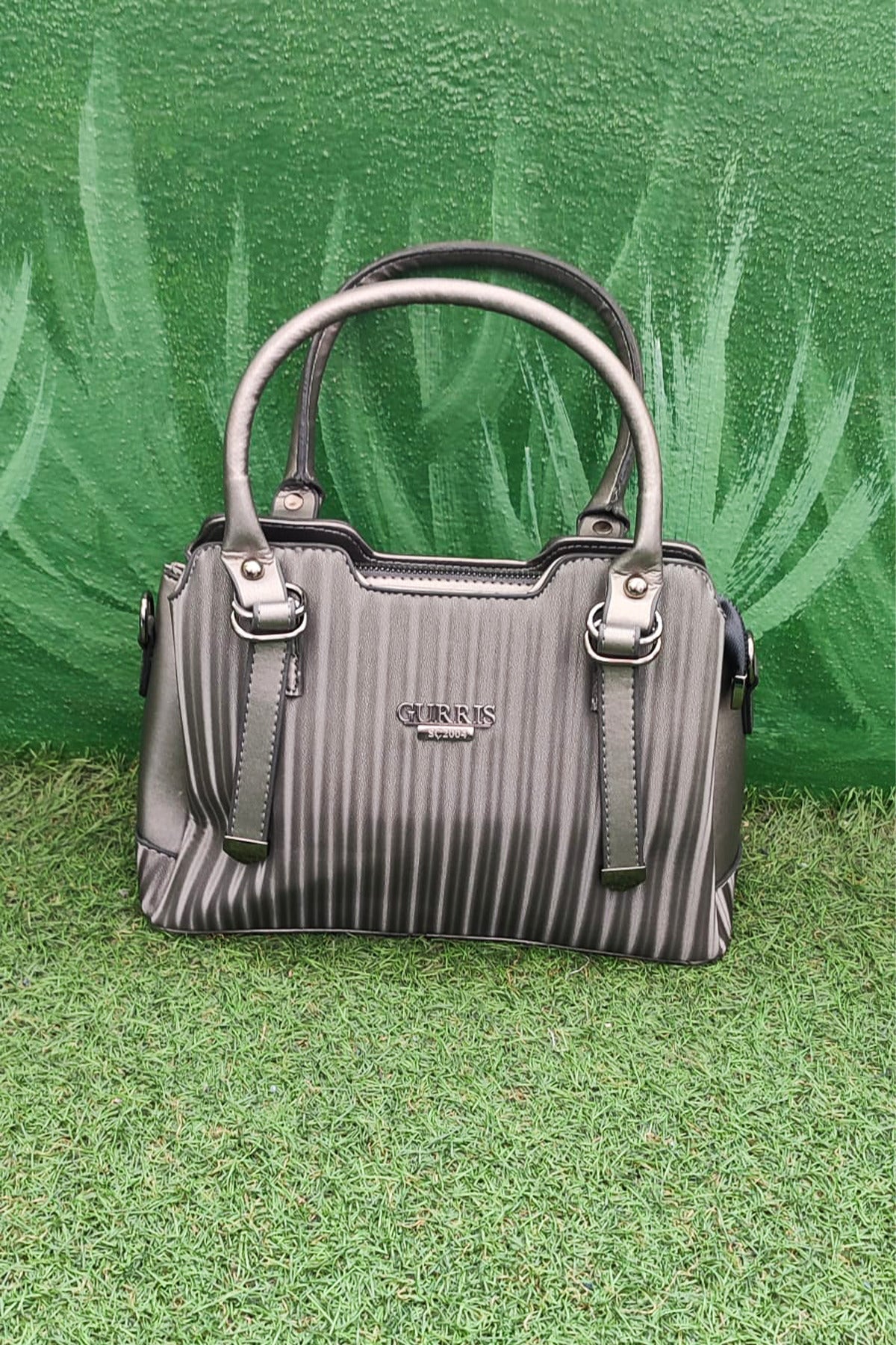 Kadın Metalik Gri Çizgili Omuz ve El Çantası – Şık Günlük Kombin Çantası