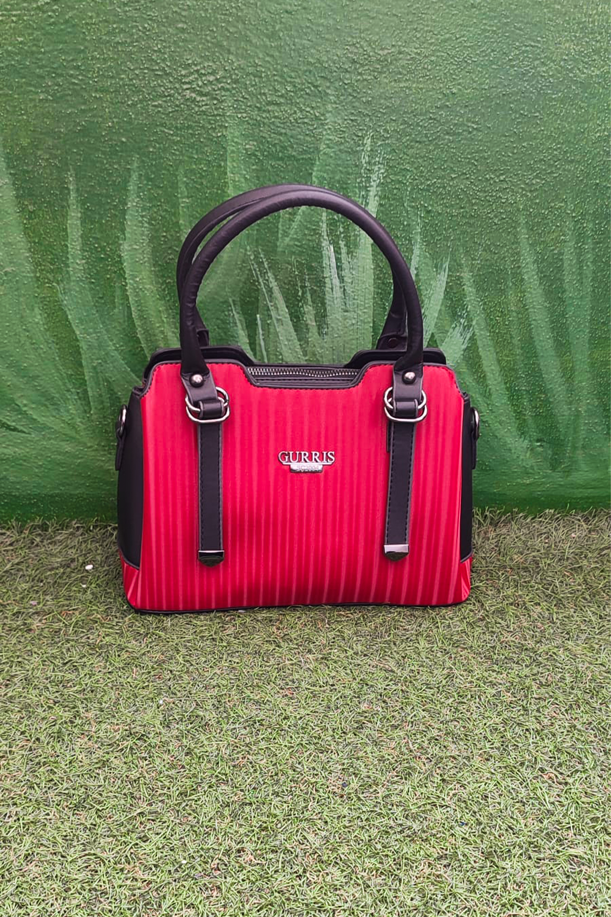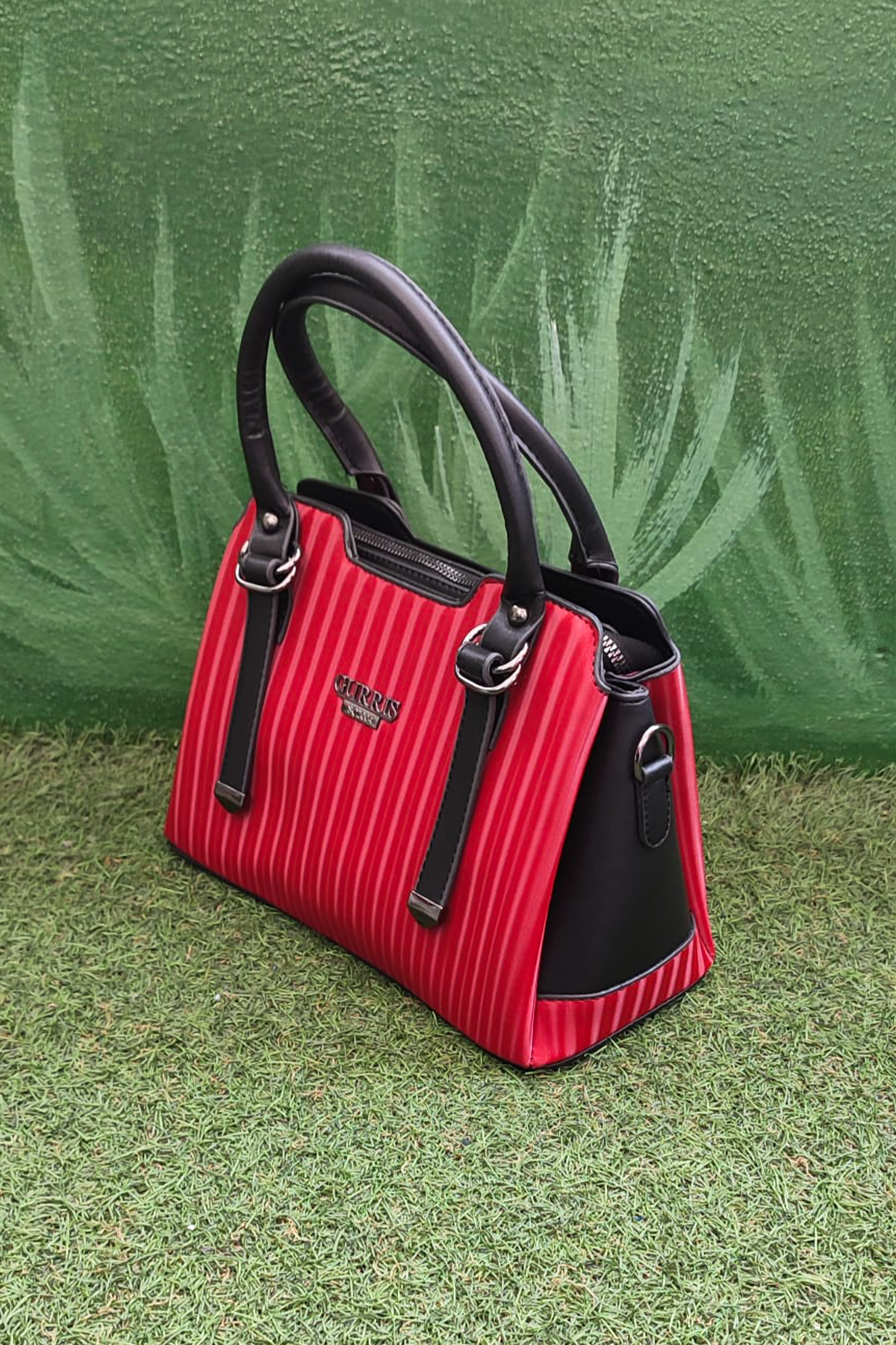 Kadın El / Omuz Çantası - Kırmızı Siyah Şık Tasarım, Fermuarlı, Geniş İç Hacimli Günlük Çanta