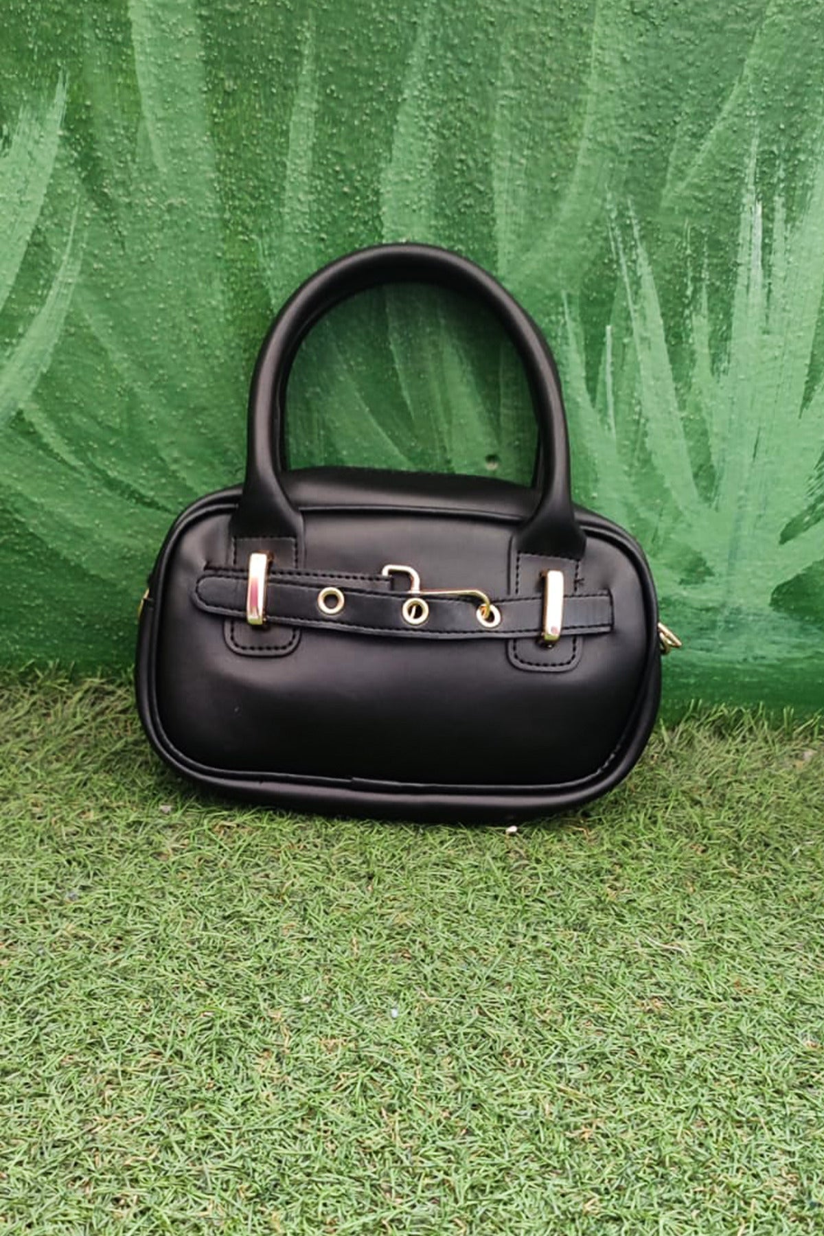 Siyah Renk Mini Kadın Kol / El / Omuz Çantası - Altın Tokalı Şık Tasarım