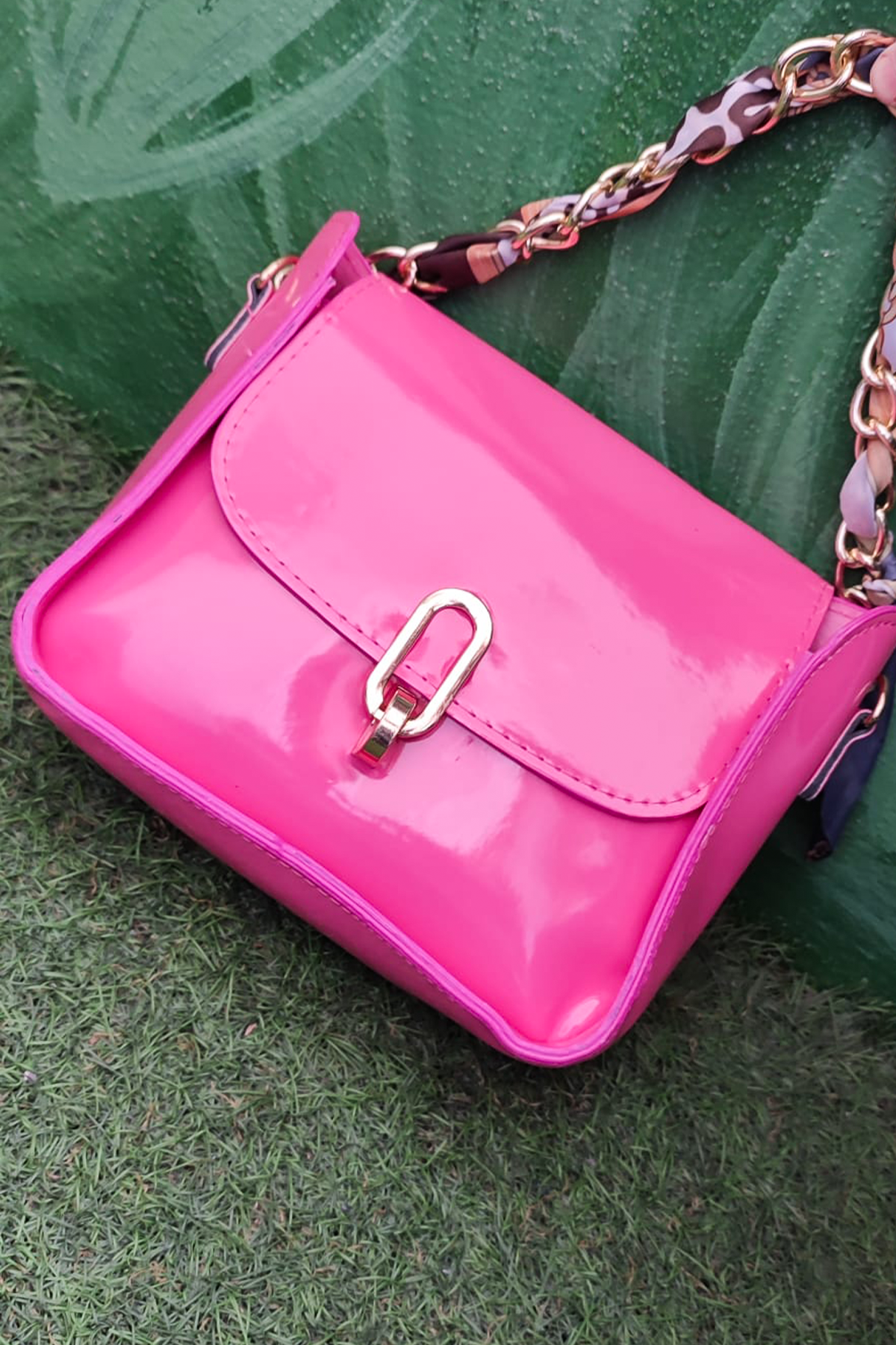 Zincir Askılı Pembe Parlak Kadın Omuz Çantası – Şık ve Trend Mini Çapraz Çanta