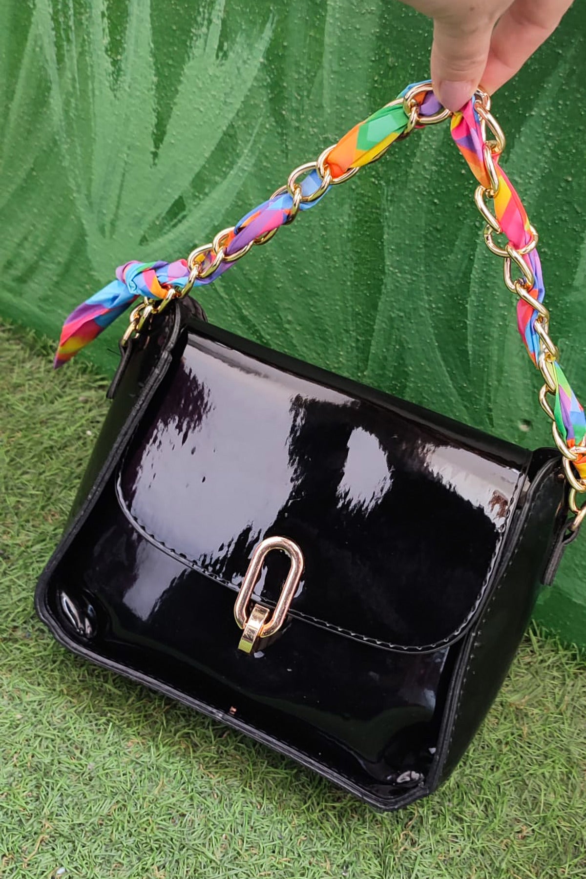 Zincir Askılı Siyah Kadın Omuz Çantası – Parlak Deri Görünümlü, Leopar Desenli Siyah Şık Çanta