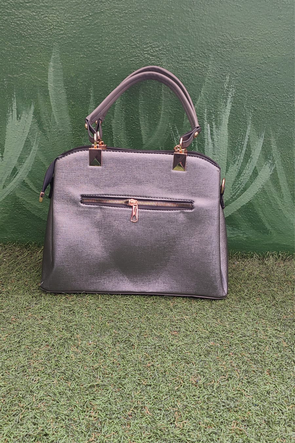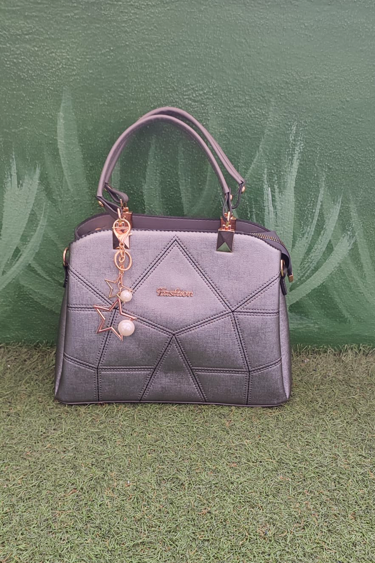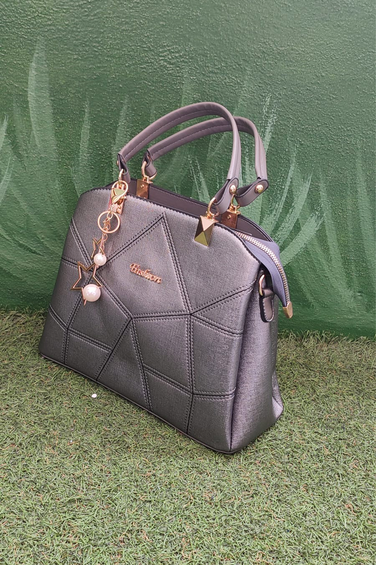 Metalik Gri Kadın El ve Omuz Çantası – Yıldız ve İnci Aksesuar Detaylı, Geometrik Dikişli Şık Model