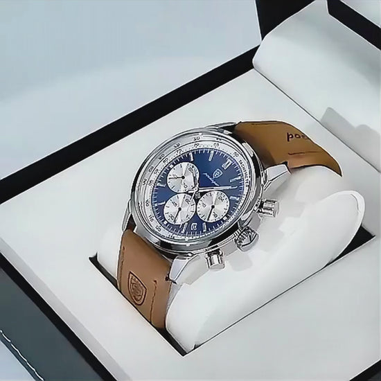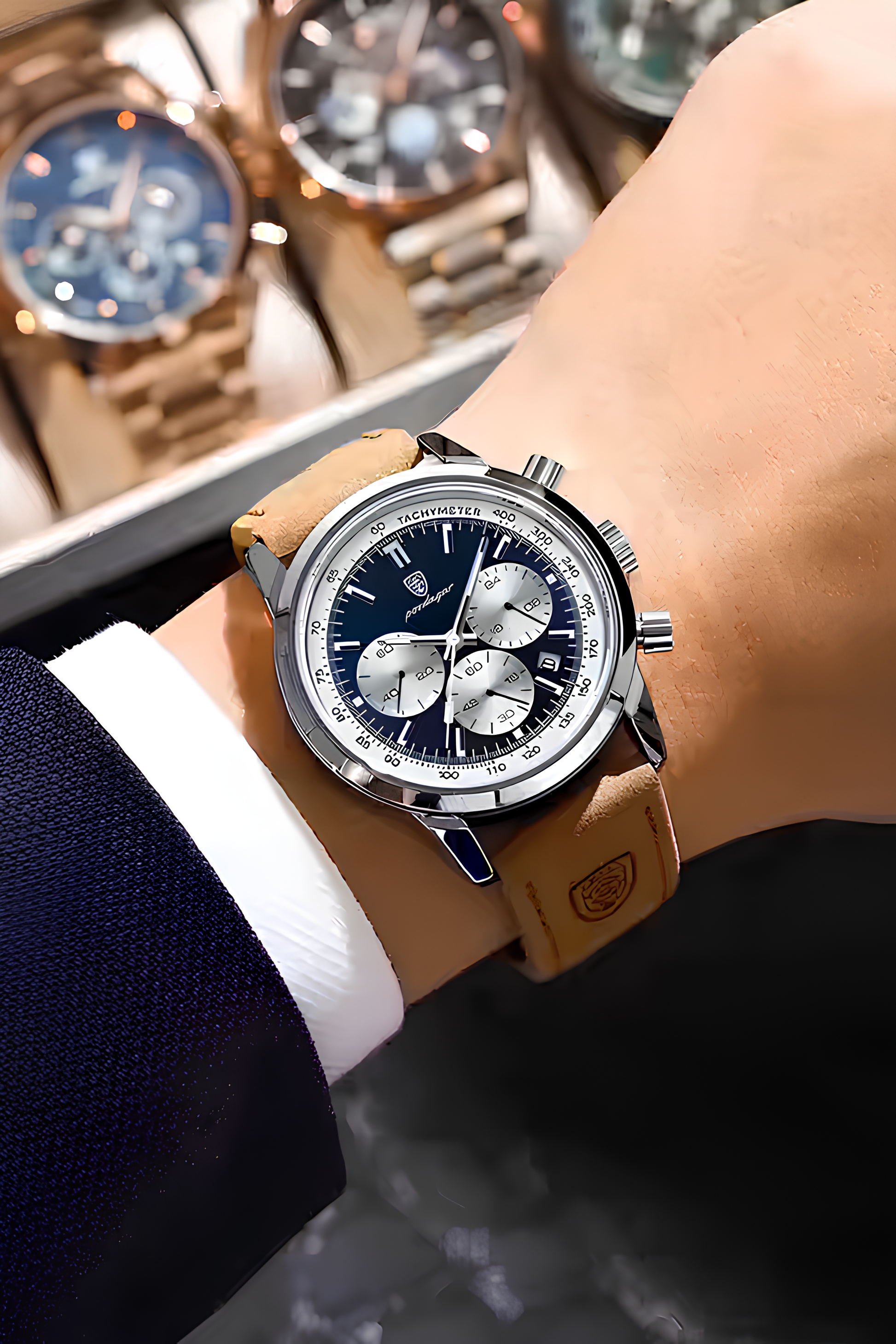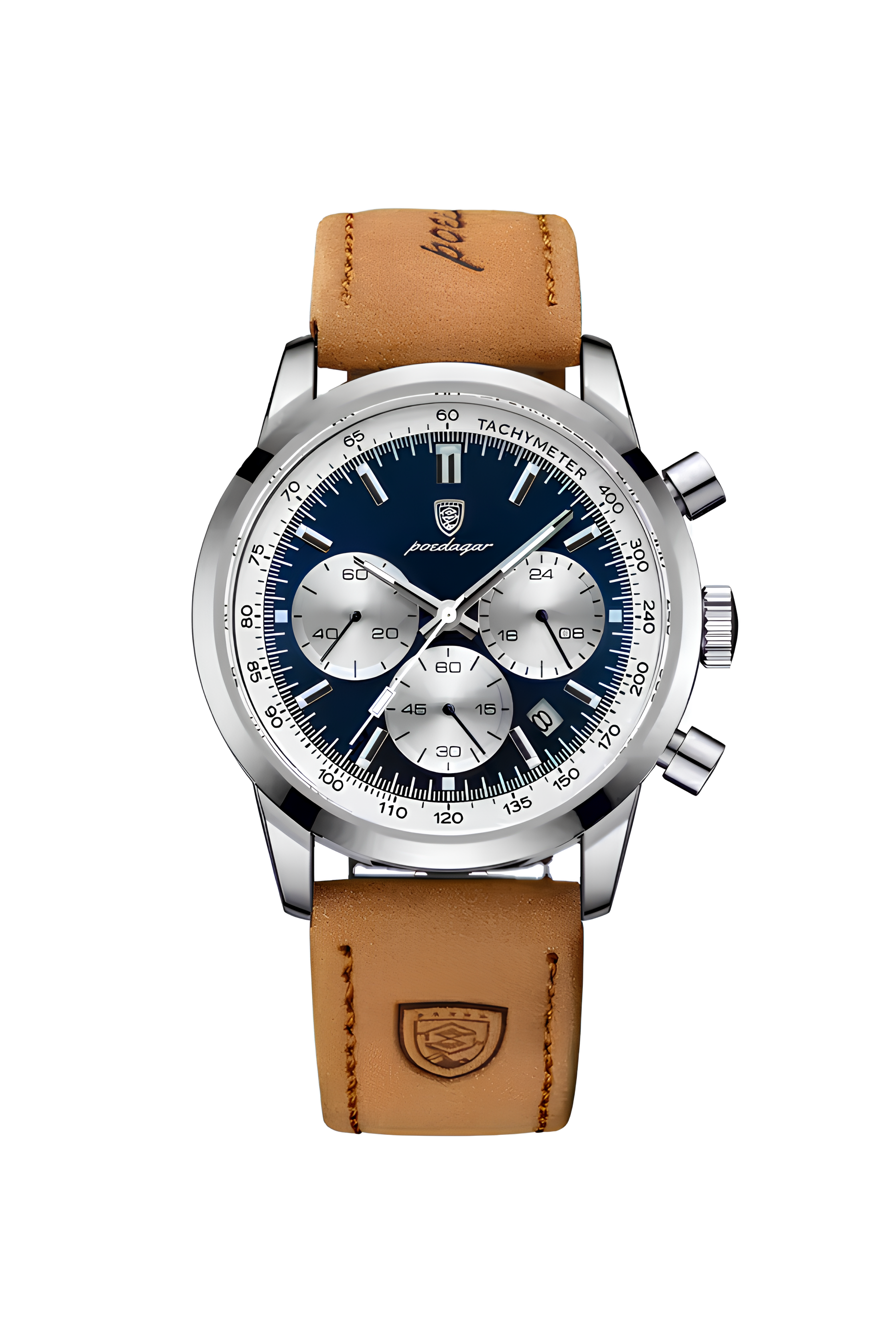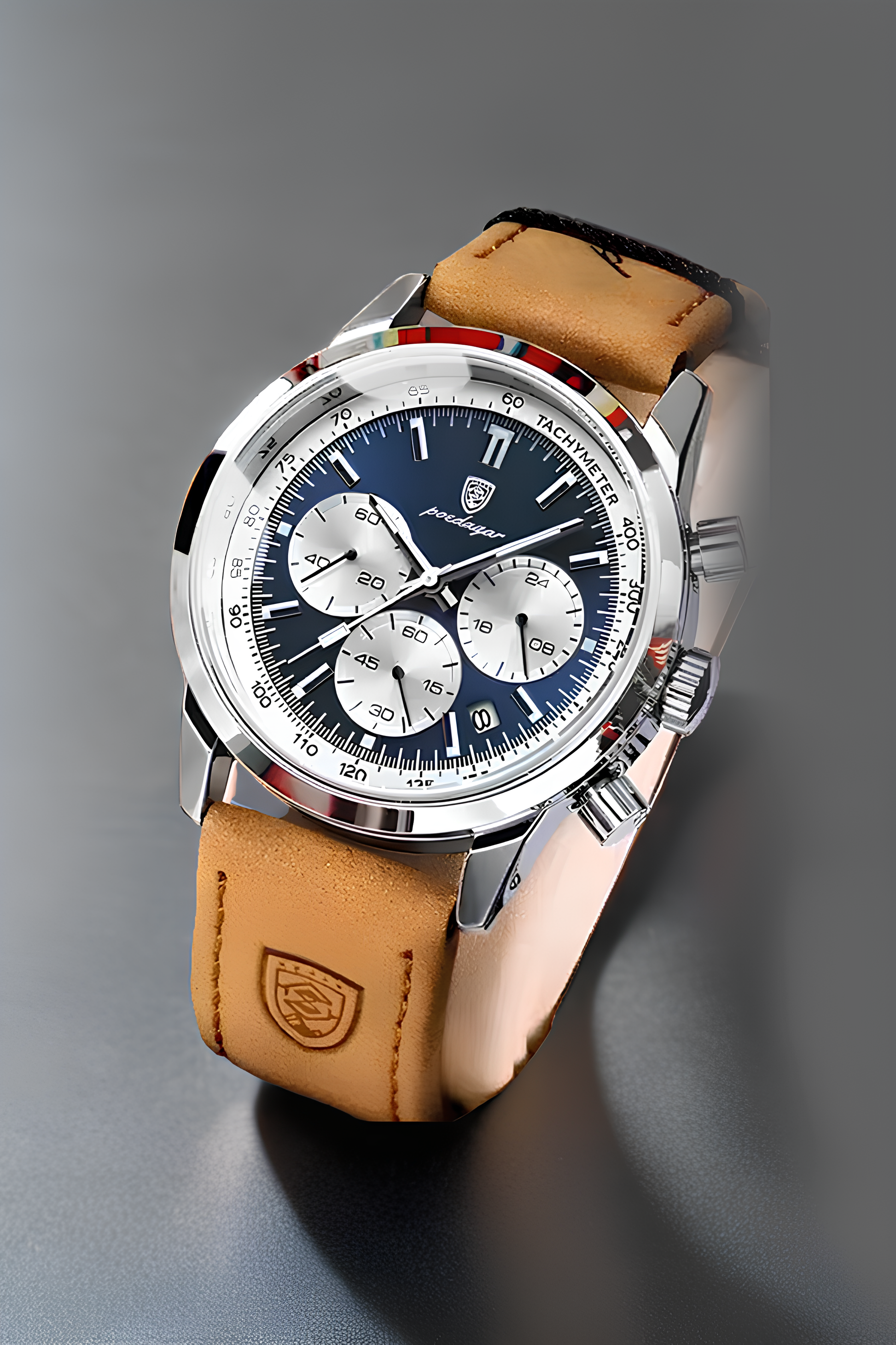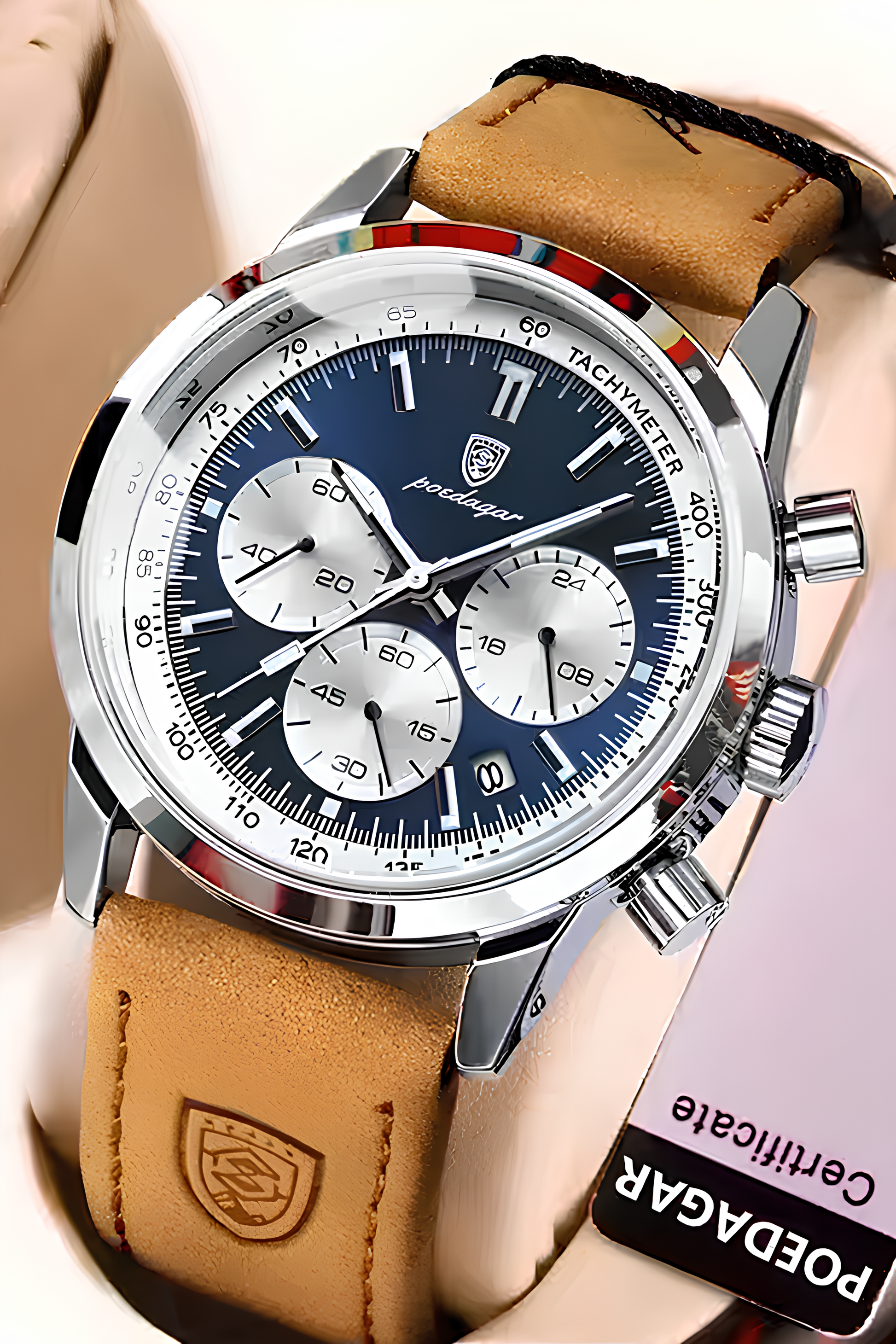 Paslanmaz Çelik Kasa Kronograf Erkek Saati Deri Kordonlu Spor Şık Tasarım