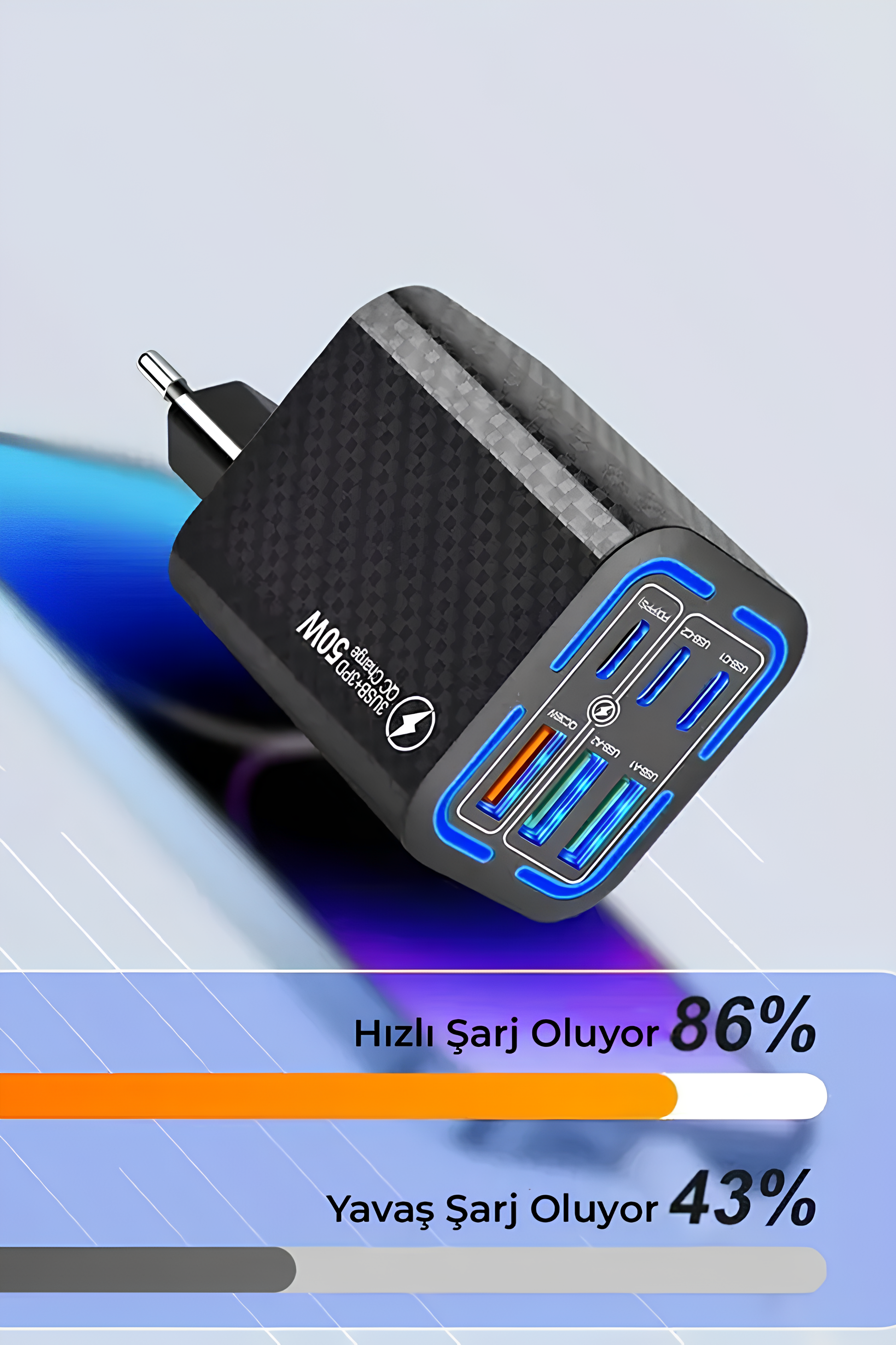 BEYAZ RENK : - 50W güç kapasitesiyle hızlı şarj imkanı sunar, böylece cihazlarınızı kısa sürede kullanıma hazır hale getirebilirsiniz.; - USB çıkışlı tasarımı sayesinde çeşitli cihazlarınızla uyumlu kullanım sağlar; akıllı telefonlardan tabletlerinize kadar geniş bir yelpazede işlevsellik sunar.; - Türkiye ve Avrupa standartlarına uygun olarak üretilmiş olup, yerel elektrik prizleriyle sorunsuzca kullanılabilir.; - Universal bağlantı tipi ile farklı ülkelerdeki elektrik prizlerine kolayca adapte olur ve seyahatlerinizde de yanınızda taşıyabileceğiniz pratik bir çözüm sunar.; - Hızlı şarj özelliği sayesinde zaman kaybetmeden enerji ihtiyacınızı karşılayarak günlük yaşamınızda rahatlık sağlar.