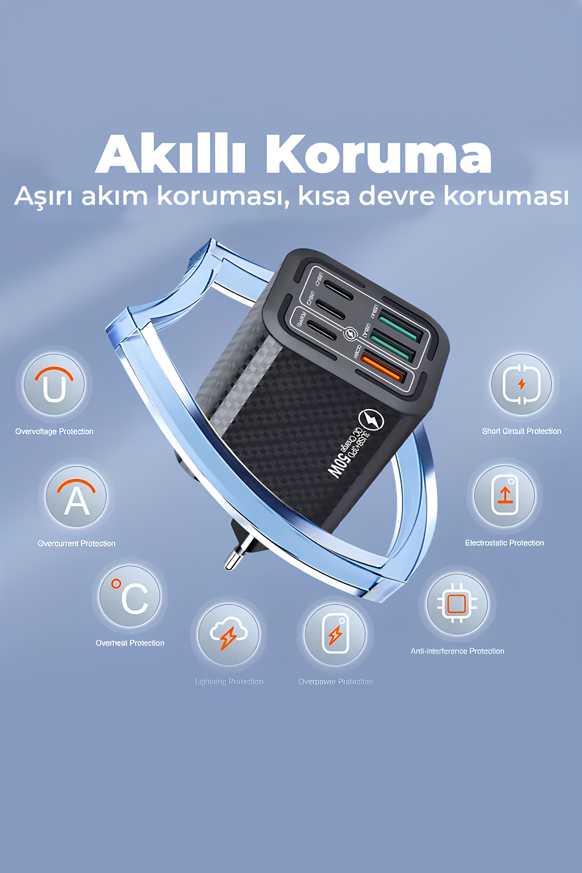 Beyaz Renk 50W Evrensel Hızlı Şarj Adaptörü - USB Çıkışlı Türkiye/Avrupa Fişli Şarj Cihazı