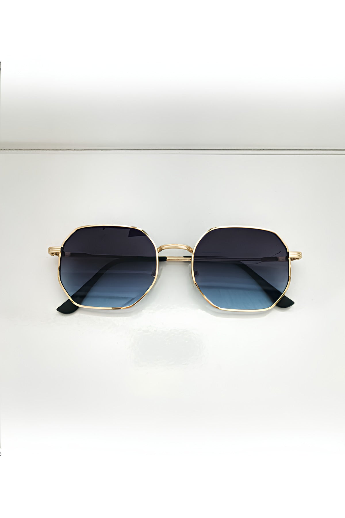 Mavi Siyah Renkli Güneş Gözlüğü, Metal Altın Çerçeve