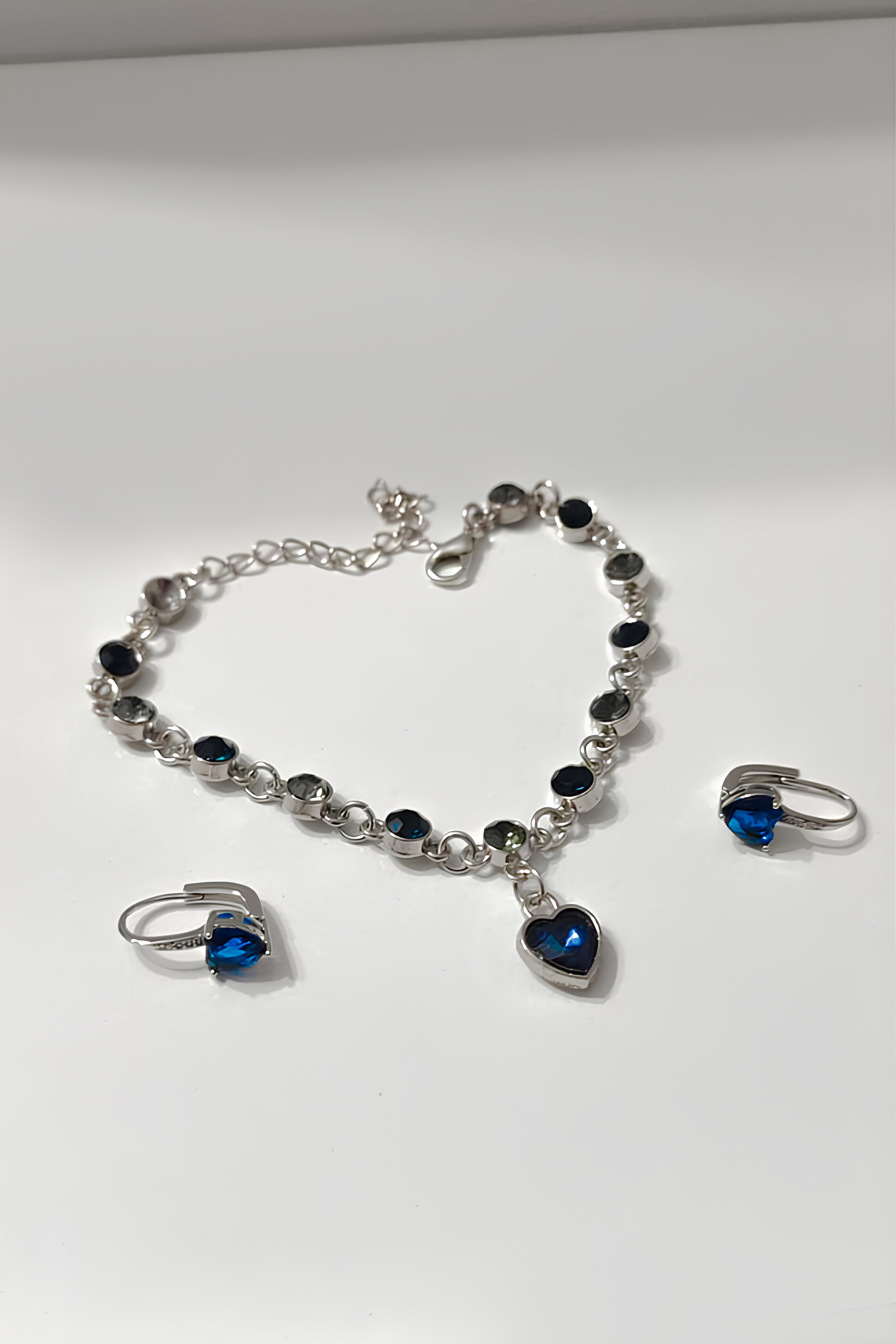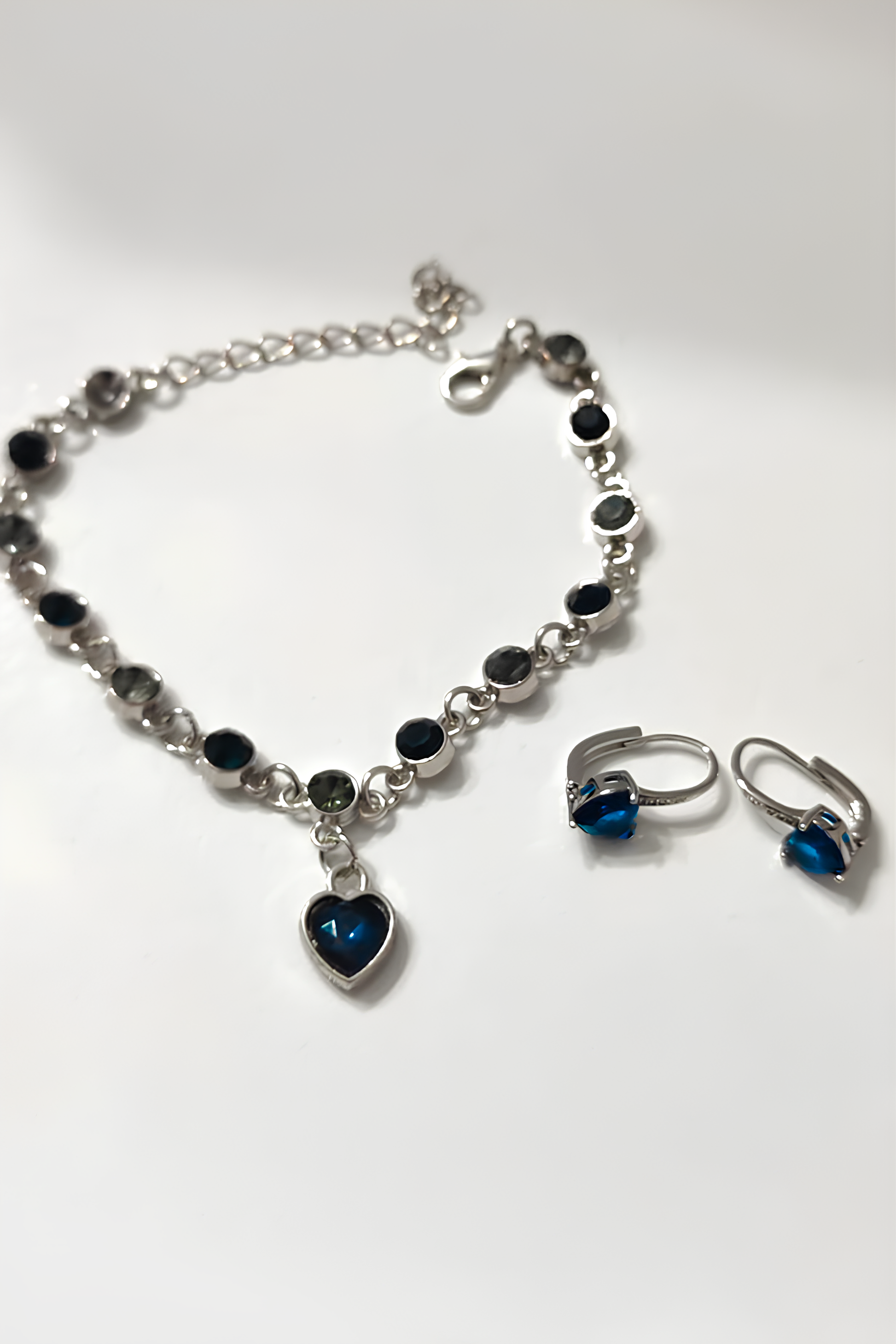 Mavi/Lacivert Renk Çelik Bileklik + Mavi/Lacivert Renk Çelik Küpe Set