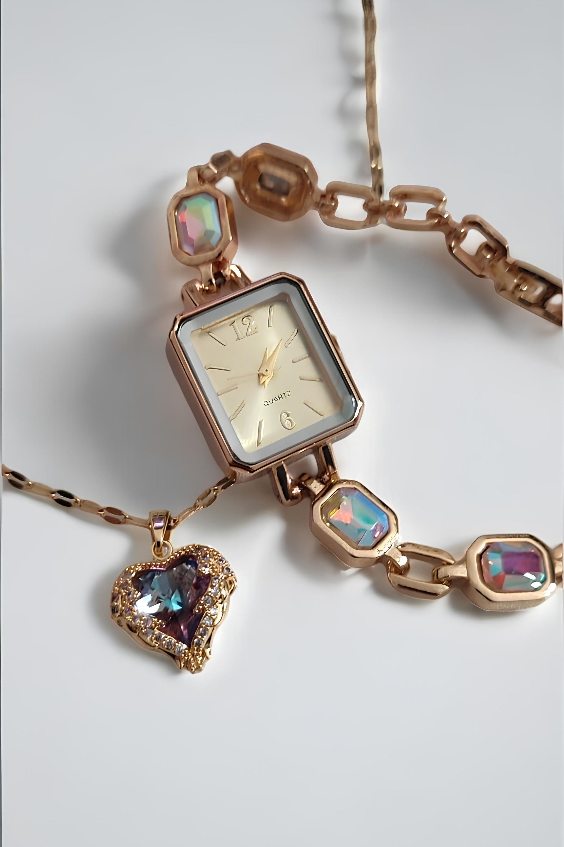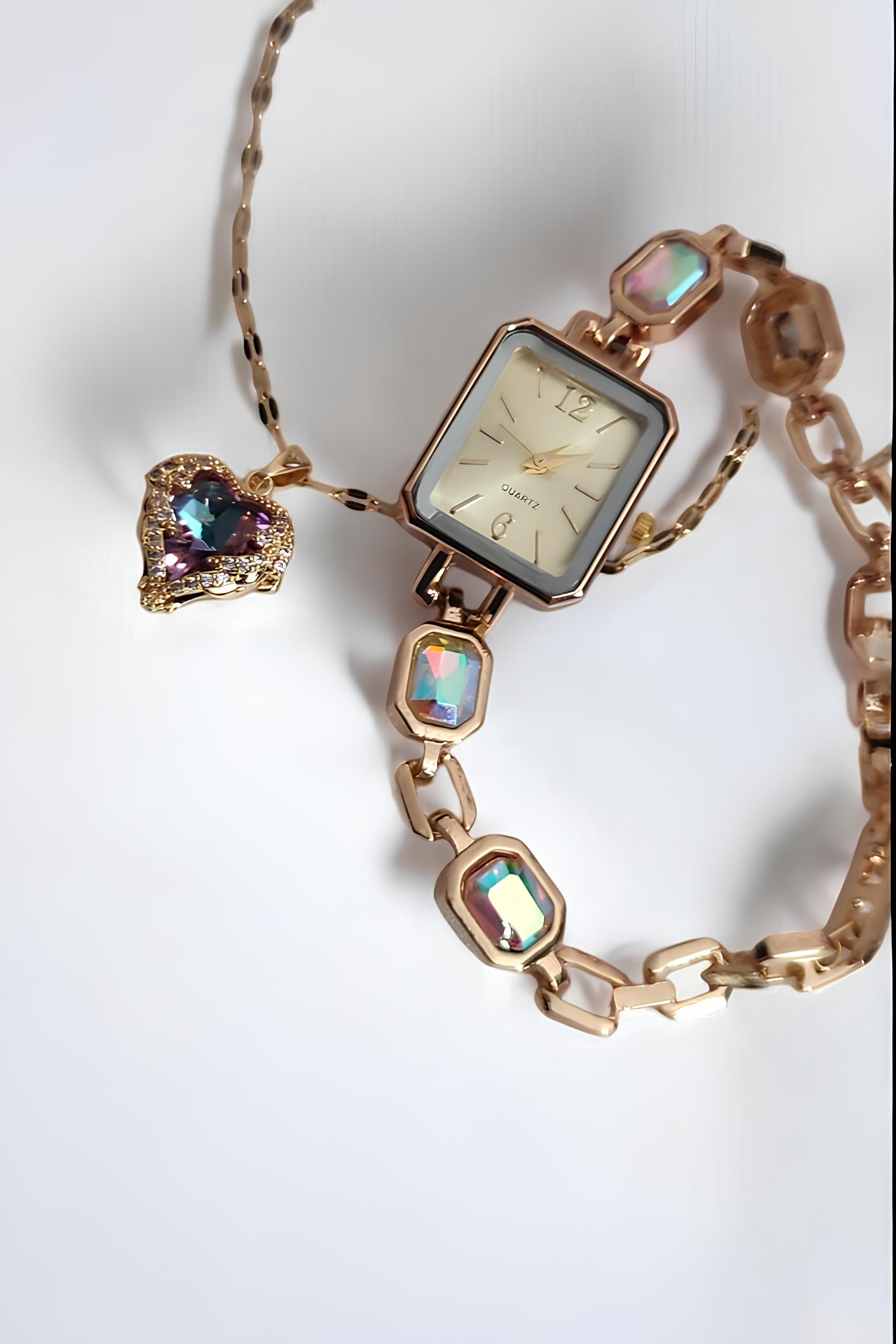 Rose Renk Şık Kadın Kol Saati ve Hediye Kolye