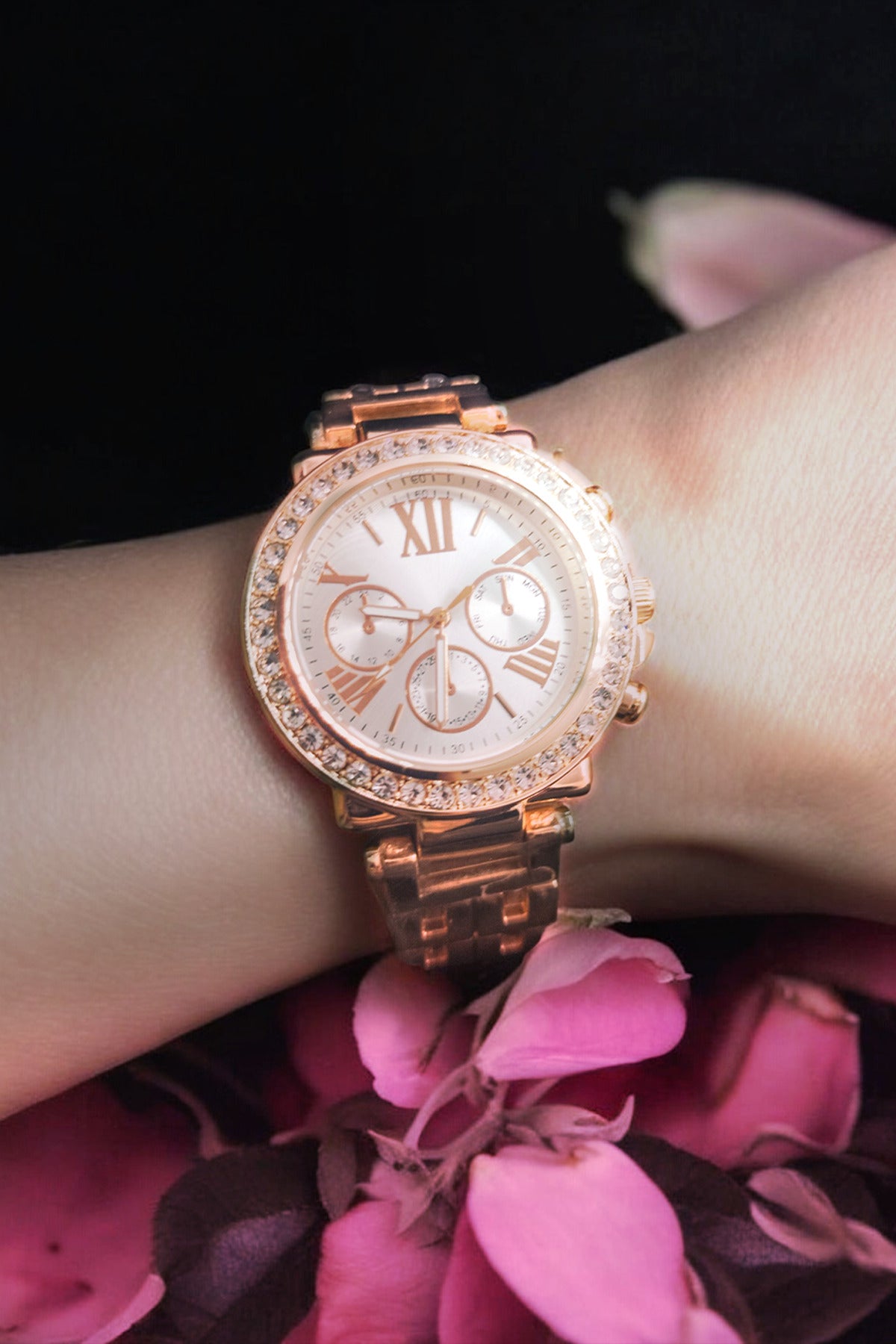 Gül Rengi Kadın Kol Saati (Altın ve Gül Renkli)